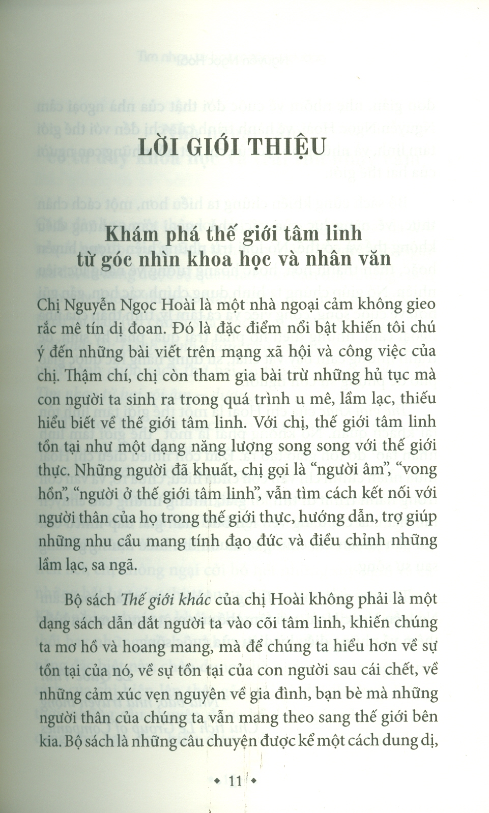 Tác giả – nhà ngoại cảm Nguyễn Ngọc Hoài chính là người ghi chép lại tất cả những hiểu biết về thế giới giới tâm linh đã và đang phủ bóng lên đời mình, trung thực lưu lại kiến thức và trải nghiệm trong gần một phần tư thế kỷ sở hữu năng lực tâm linh, thực hành công việc tiếp xúc với vong hồn và tìm mộ liệt sĩ trong vai trò nhà ngoại cảm công tác trong các cơ quan nghiên cứu về tiềm năng con người của Việt Nam.