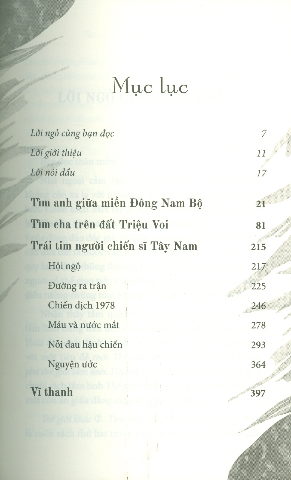 "Thế giới khác 2: Tìm nhau từ hai cõi âm – dương" là những minh chứng tiếp theo cho sự tồn tại của một thế giới tâm linh hiện diện qua từng con chữ. Thế giới tâm linh tồn tại. Thế giới ấy không phải là sự huyễn hoặc của tâm tưởng và niềm tin một chiều của con người, hay qua sự thêu dệt của dân gian, hay chỉ là lớp áo dày và trang trọng khoác bên ngoài các lễ nghi, tập tục như một văn hóa lâu đời của con người, bất chấp niềm tin và tư tưởng ngược chiều của con người vào vô thần và hữu thần.