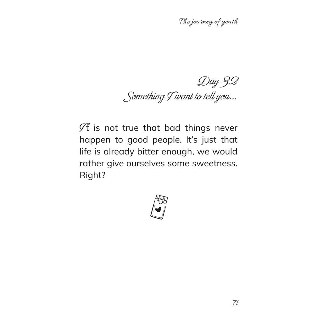Cuốn sách “The Journey of Youth” là những lá thư được viết bằng 2 thứ tiếng Anh - Việt, nhắn nhủ tới bạn trên đoạn đường gập ghềnh nhất của tuổi trẻ. Nếu bạn đang có chút lạc lõng và hoang mang, hãy để “The Journey of Youth” ở bên, gửi tặng bạn đôi điều khích lệ.