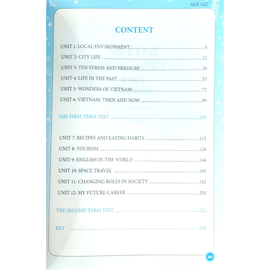 Mỗi bài học trong cuốn sách Bài tập Tiếng Anh lớp 9 được biên soạn theo chủ điểm quen thuộc với học sinh Trung học cơ sở.