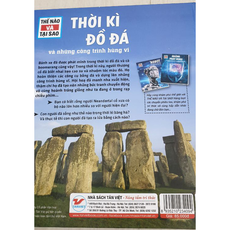 Bộ sách Thế Nào Và Tại Sao dành cho thiếu nhi từ 8 đến 10 tuổi với kiến thức trong mọi lĩnh vực khoa học tự nhiên cũng như lịch sử và kỹ thuật. Qua đó, bạn đọc nhỏ tuổi có thể tìm hiểu về thế giới bao la, rộng lớn xung quanh. Bánh xe đã được phát minh trong thời kì đồ đá và cả boomerang cũng vậy! Trong thời kì này, người thượng cổ đã biết nhai kẹo cao su và nhuộm tóc màu đỏ. Họ hoàn thiện các công cụ bằng đá và dựng lên những công trình hùng vĩ. Thậm chí họ đã tạo nên những bức tranh chuyển động vô cùng hoành tráng, giống như ta đang ở trong rạp chiếu phim vậy.