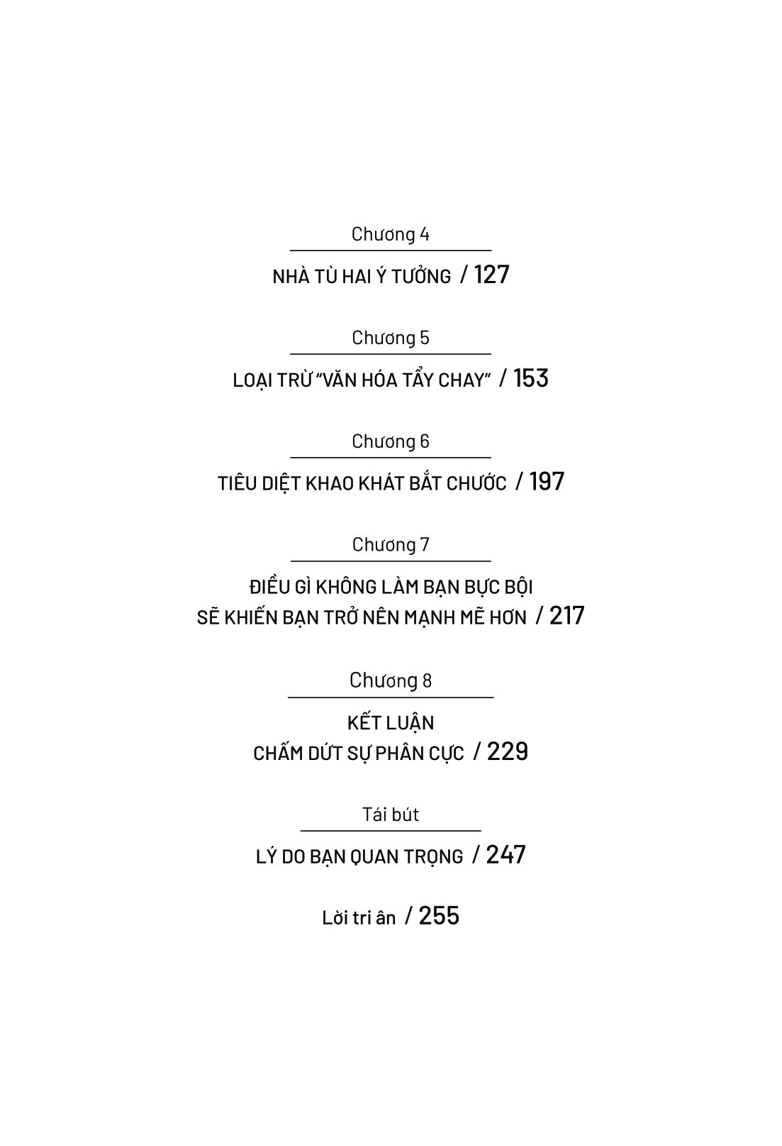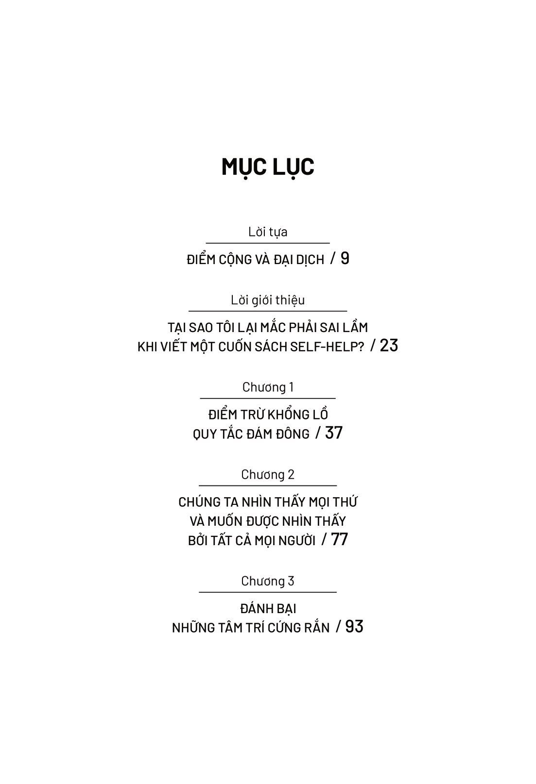 Quyển sách này không phải là về sức mạnh của lối suy nghĩ tích cực. Đây là về việc trở nên tích cực. Mọi sự lựa chọn đều như một trò lật đồng xu may rủi: là cộng hay trừ? Hãy tự răn mình vào mỗi sáng để chọn một con đường tích cực và tránh xa hoặc loại bỏ bất kỳ điều gì có thể được xem là điểm trừ (có thể nói là điều tiêu cực).