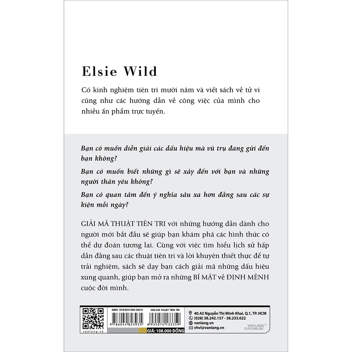 GIẢI MÃ THUẬT TIÊN TRI với những hướng dẫn dành cho người mới bắt đầu sẽ giúp bạn khám phá các hình thức có thể dự đoán tương lai. Cùng với việc tìm hiểu lịch sử hấp dẫn đằng sau các thuật tiên tri và lời khuyên thiết thực để tự trải nghiệm, sách sẽ dạy bạn cách giải mã những dấu hiệu xung quanh, giúp bạn mở ra những BÍ MẬT về ĐỊNH MỆNH cuộc đời mình.