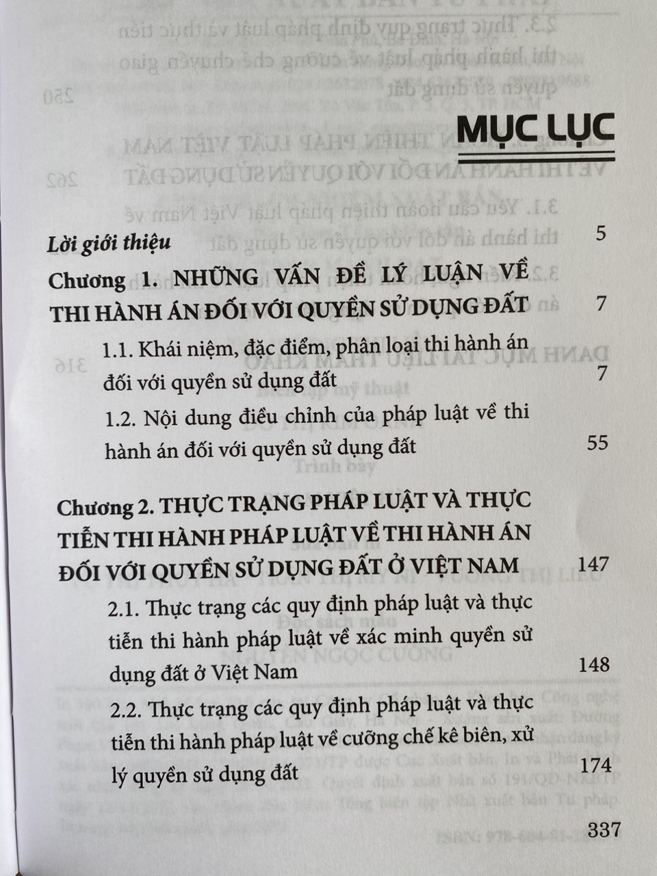 Thi hành án dân sự là hoạt động đưa bản án, quyết định của Tòa án, phán quyết của Trọng tài thương mại, quyết định xử lý vụ việc cạnh tranh ra thi hành trên thực tế. Với nhiệm vụ này, thi hành án dân sự đóng vai trò quan trọng trong việc xây dựng niềm tin của người dân vào Tòa án và hệ thống tư pháp, bảo đảm quyền con người, đặc biệt là quyền tiếp cận công lý và quyền được xét xử công bằng. Bởi lẽ, người dân khi yêu cầu Tòa án xét xử các tranh chấp thì mong muốn của họ không chỉ là tranh chấp được nhanh chóng giải quyết, phán quyết được ban hành kịp thời mà mục đích cuối cùng còn là các quyền, lợi ích hợp pháp của họ được bảo đảm và duy trì. Nhằm góp phần xây dựng cơ sở lý luận cho việc tiếp tục hoàn thiện pháp luật về thi hành án đối với quyền sử dụng đất, Nhà xuất bản Tư pháp xuất bản cuốn: "Thi hành án đối với quyền sử dụng đất theo pháp luật Việt Nam hiện hành". Ngoài phân tích các quan điểm được thừa nhận chung, Nhà xuất bản Tư pháp giữ nguyên một số quan điểm của tác giả có thể còn có ý kiến đa chiều để bạn đọc tham khảo và có ý kiến trao đổi.