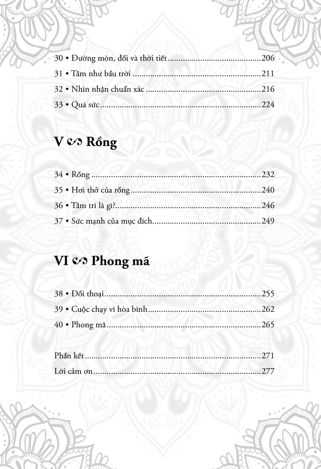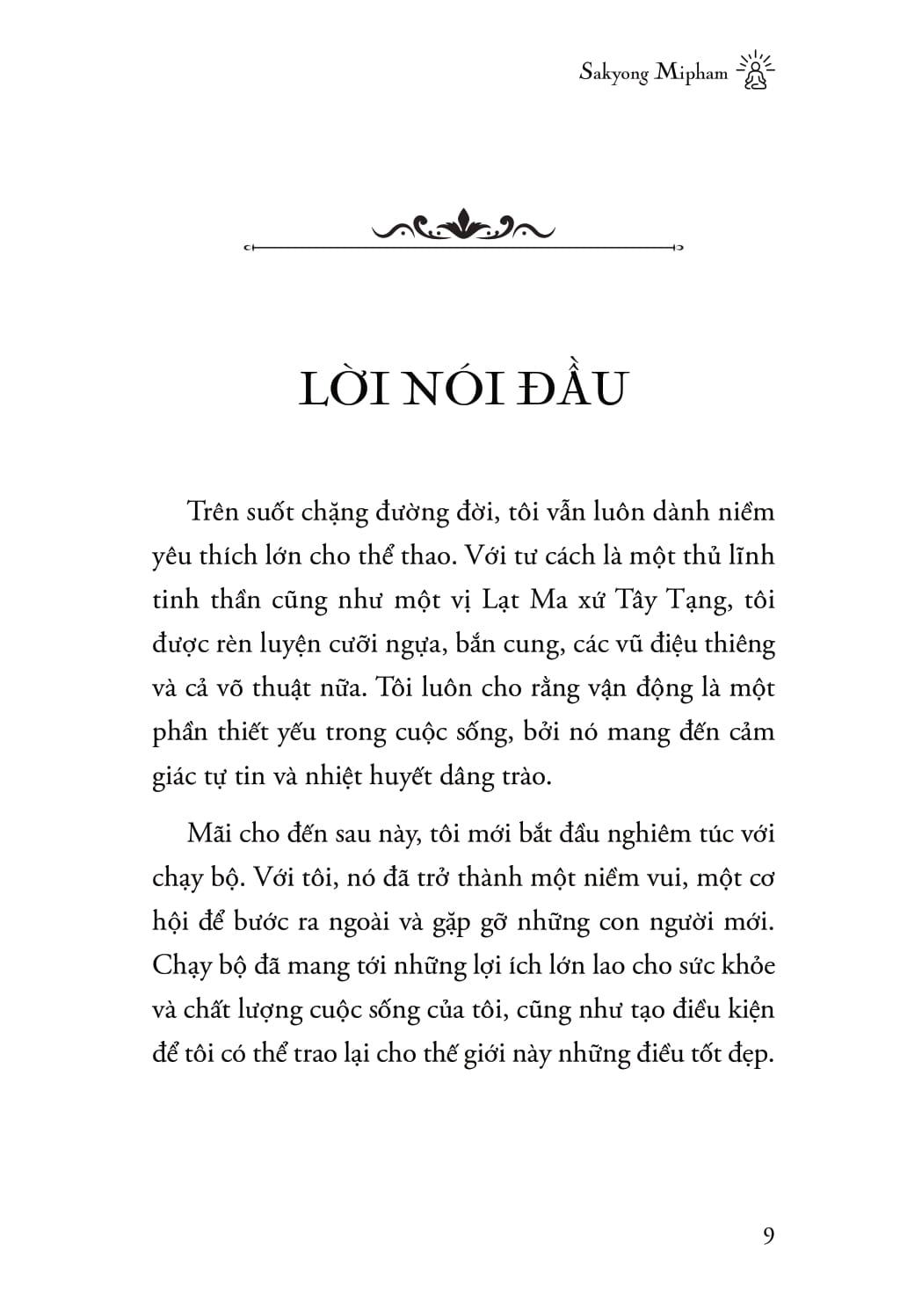 Tác giả không chỉ đưa ra những nguyên tắc thiền cơ bản mà ông đã đúc kết từ nhiều năm tu tập, mà còn chỉ rõ rằng bất cứ ai – không phân biệt độ tuổi, thể trạng hay trình độ – đều có thể thực hành việc kết hợp giữa thiền và chạy bộ. Thông qua những hướng dẫn cụ thể và lời khuyên sâu sắc, ông giúp người đọc hiểu cách tạo ra sự hòa hợp giữa cơ thể và tâm trí, từ đó đạt được sự bình an và cân bằng trong cuộc sống.