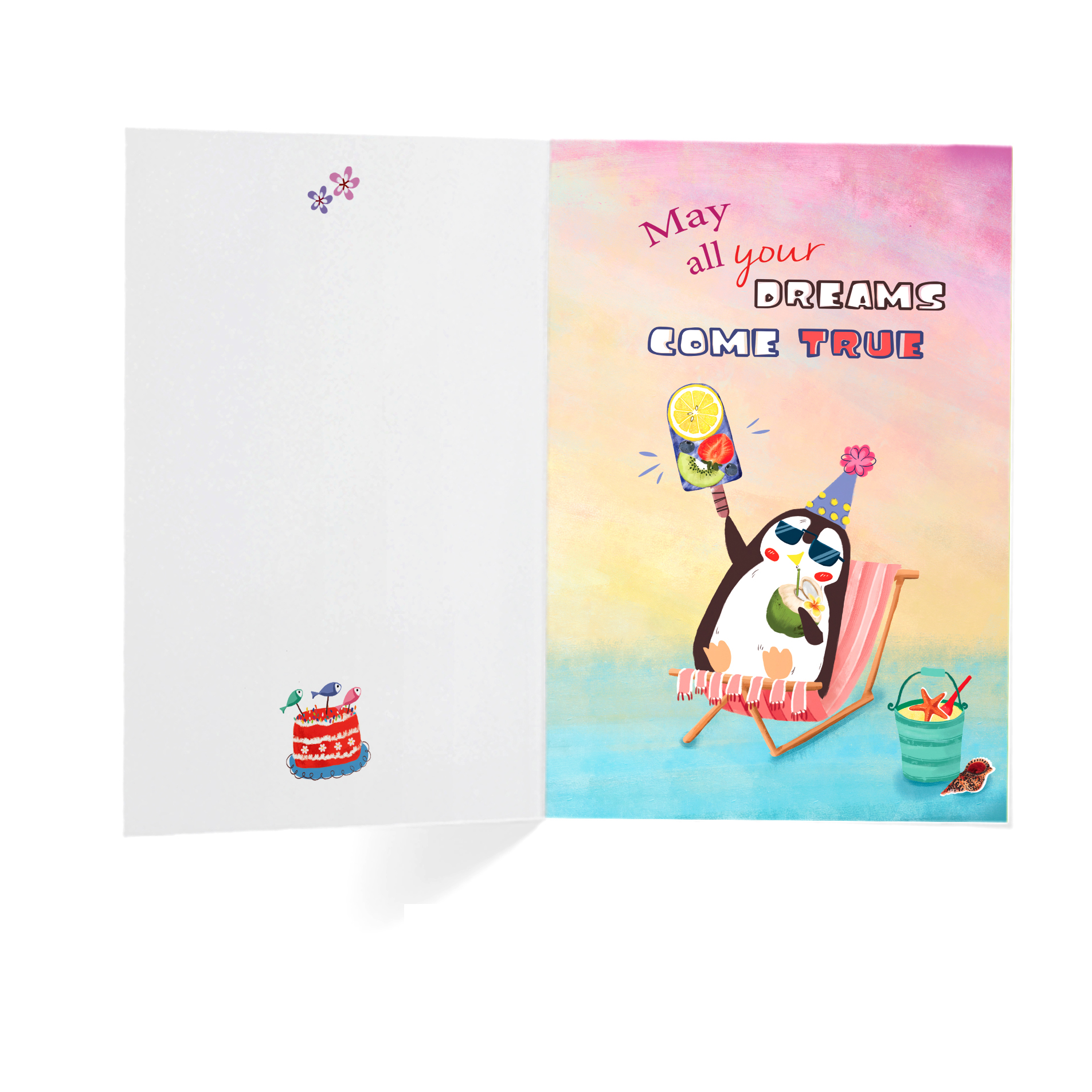 Mang đến bất ngờ vui nhộn với thiệp 3D Pop Up hình cá voi xanh đáng yêu kèm bong bóng sinh nhật đầy màu sắc. Khi mở thiệp, cá voi bật nổi giữa làn sóng