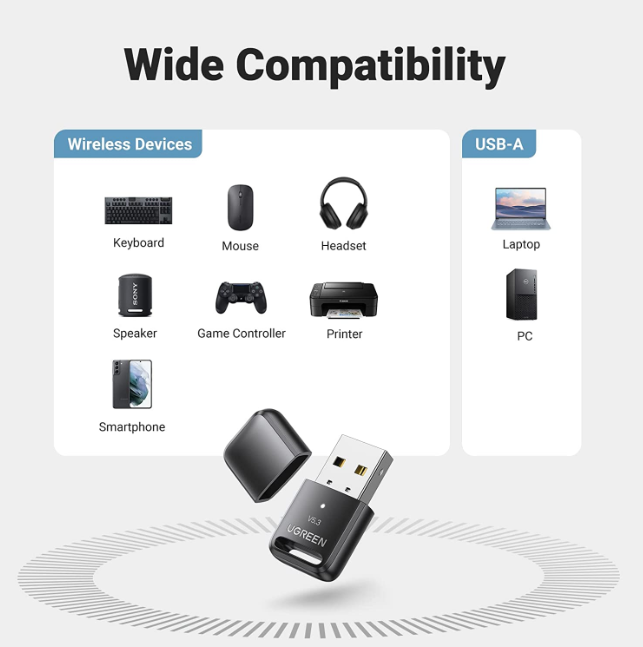 Thông số kỹ thuật: Thiết bị USB Bluetooth 5.3 Dongle cho PC chính hãng Ugreen 90225 cao cấp