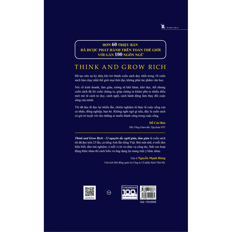Think and grow rich – 13 nguyên tắc nghĩ giàu, làm giàu là cuốn sách “chỉ dẫn” duy nhất chỉ ra những nguồn lực bạn phải có để thành công. Mỗi chương trong cuốn sách đều đề cập đến bí quyết kiếm tiền, từ việc có niềm tin, có mong muốn đến những kiến thức chuyên sâu, những ý tưởng, những kế hoạch, những cách đưa ra quyết định.