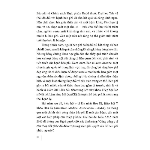 Nếu bạn tìm đọc cuốn sách này, có lẽ là bạn đang gặp khó khăn về vấn đề cân nặng. Có thể bạn đã thử một số chương trình dinh dưỡng với nhiều phương pháp khác nhau - những phương pháp này thường quy trách nhiệm cho việc ăn quá nhiều thức ăn chứa chất béo và đường. Nhưng sự thật không đơn giản như vậy. Bệnh thừa cân còn dính dáng đến di truyền, hành vi, tâm lý - và yếu tố đầu tiên bị bỏ sót trong hầu hết các phương pháp ăn kiêng là một kế hoạch rõ ràng để xử lý những vấn đề tâm lý giúp chúng ta thay đổi nhận thức về dinh dưỡng.