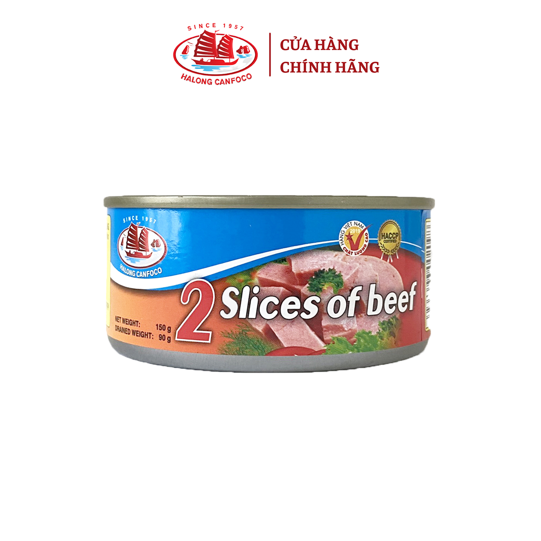 MÓN NGON THƯƠNG HIỆU - Sản phẩm: Thịt Bò 2 Lát Hạ Long - Thương hiệu : Halong Canfoco. - Khối lượng: Hộp 150g | Khối lượng cái: 90g. ️ Sản phẩm được sản xuất