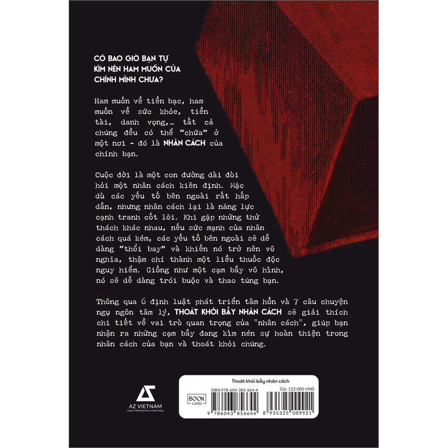 Thông qua 6 định luật phát triển tâm hồn và 7 câu chuyện ngụ ngôn tâm lý, THOÁT KHỎI BẪY NH N CÁCH sẽ giải thích chi tiết về vai trò quan trọng của “nhân cách”, giúp bạn nhận ra những cạm bẫy đang kìm nén sự hoàn thiện trong nhân cách của bạn và thoát khỏi chúng.