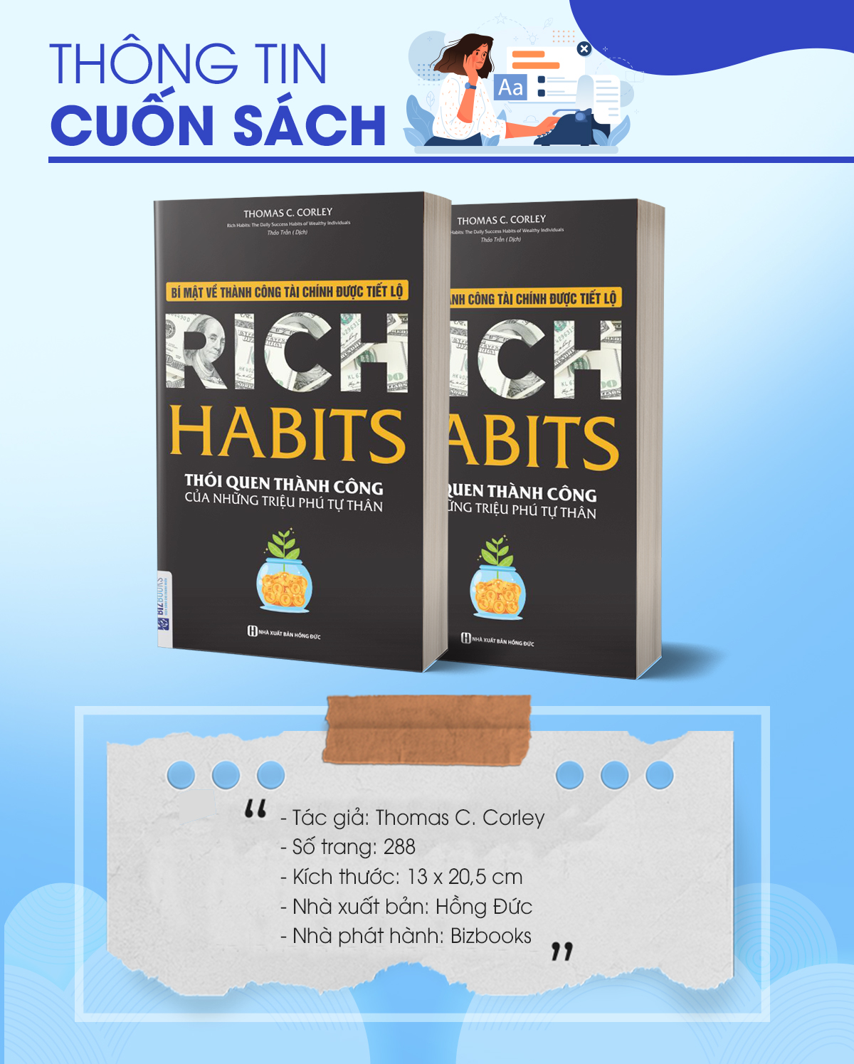 - Ông đã dành 5 năm nghiên cứu về sự khác biệt giữa 233 cá nhân siêu giàu và 128 người nghèo để viết lên cuốn sách này. Review sách | Rich Habits Thói quen thành công của những triệu phú tự thân John Duong | 9 Thói Quen của NGƯỜI GIÀU Giám đốc trung tâm tiếng Anh Victoria Bắc Giang chia sẻ bí quyết thành công cùng sách Rich Habits