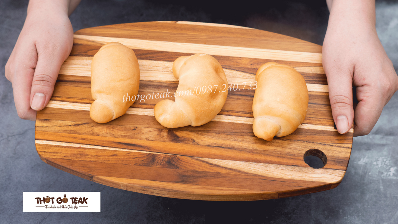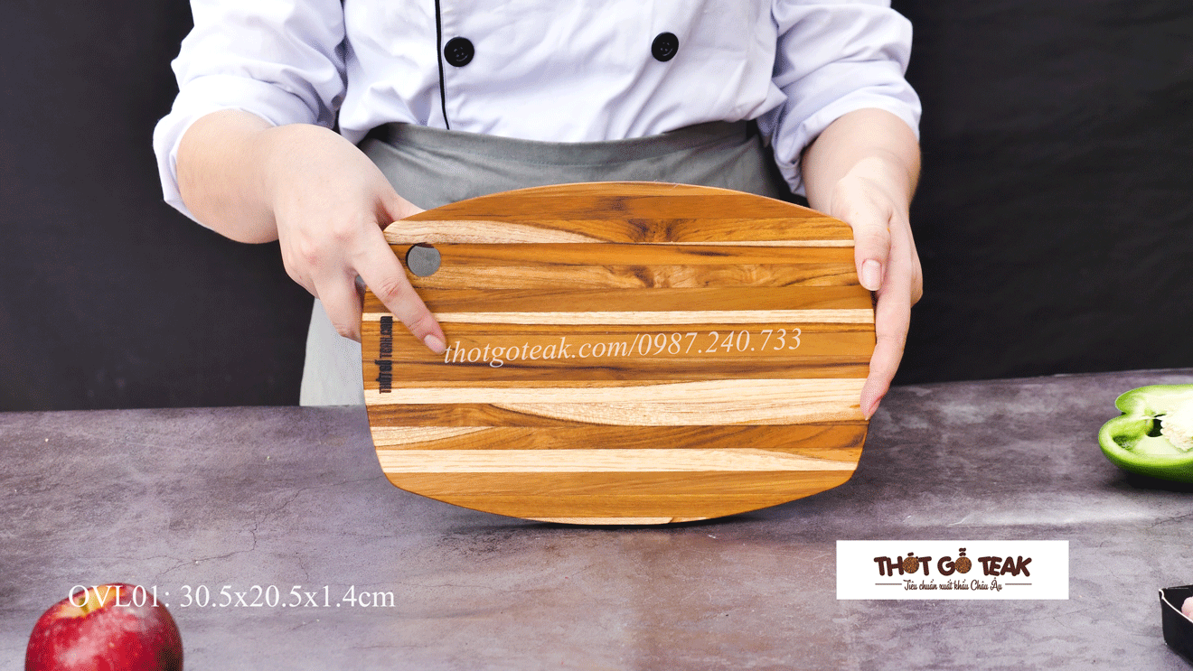 - Thớt gỗ Teak có chứa dầu tự nhiên ẩm bởi vậy bề mặt gỗ không bị nứt hay cong vênh trong quá trình băm chặt. Đây là ưu điểm tuyệt vời so với những sản phẩm thớt gỗ khác.