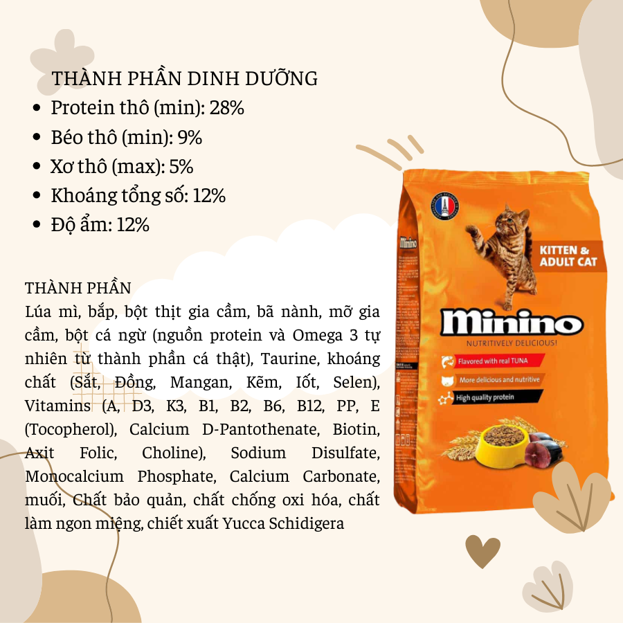 Những năm gần đây, thói quen chăm sóc và nuôi dưỡng mèo ở Việt Nam đã khác xưa rất nhiều. Không còn là con vật nuôi để bắt chuột, các chú chó mèo ngày nay đã được xem như một thành viên trong gia đình. Việc ăn uống của các chú mèo cũng được người nuôi quan tâm sát sao hơn, không còn là “cơm thừa canh cặn” như trước nữa. Chính vì vậy ngành công nghiệp thức ăn chế biến sẵn cho thú cưng ở Việt Nam đã có những bước phát triển vượt bậc. Trong số các thương hiệu thức ăn được bày bán trên thị trường hiện nay, thức ăn cho mèo Minino được nhiều người tin tưởng lựa chọn hơn cả.