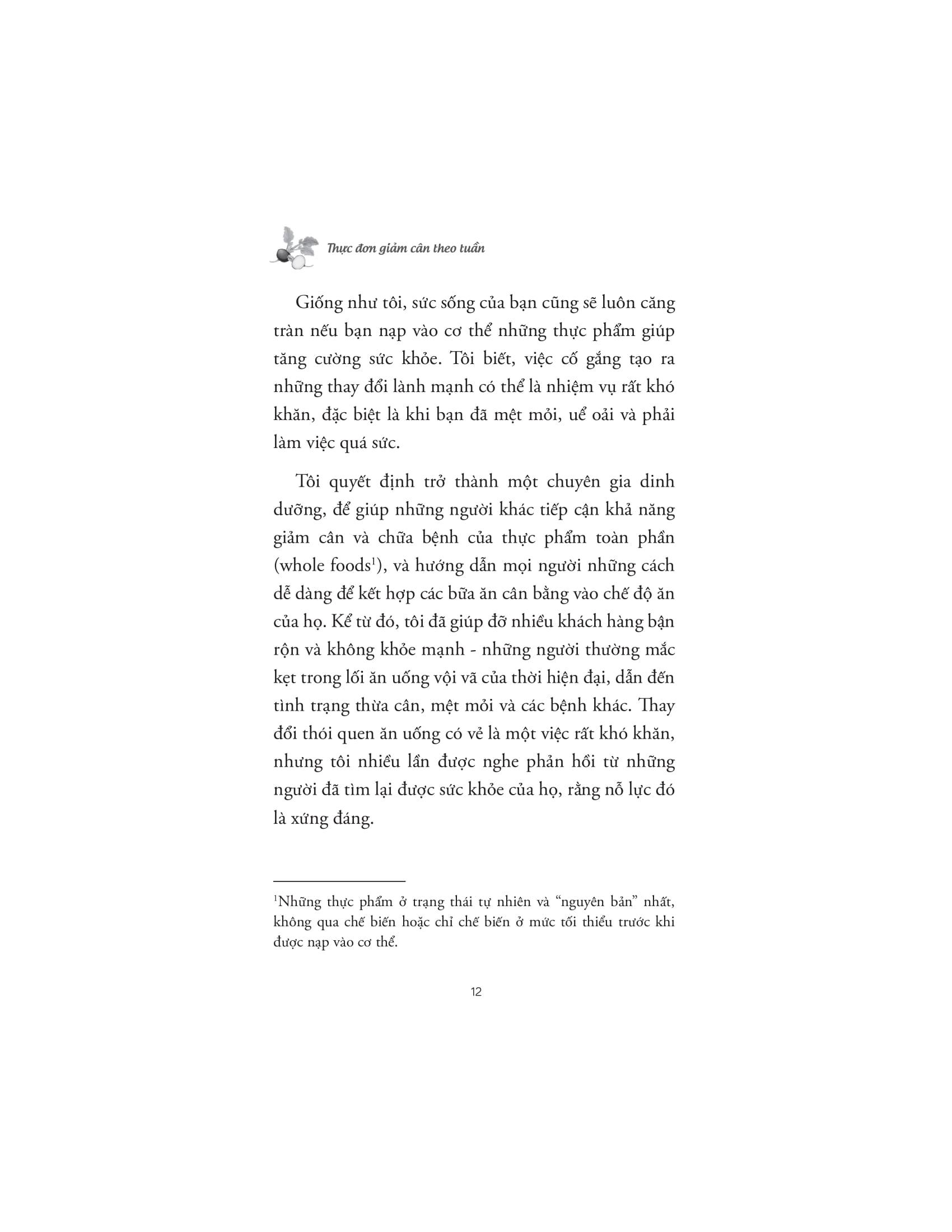 Cuốn sách “Thực đơn giảm cân theo tuần” được ra đời nhằm giúp bạn giải quyết những vấn đề đó, cung cấp cho bạn một lộ trình giảm cân an toàn, hiệu quả, và bền vững. Không chỉ đơn thuần là giảm số cân nặng, cuốn sách còn hướng đến việc giúp bạn xây dựng một chế độ ăn uống lành mạnh, giàu dinh dưỡng, ngon miệng và dễ thực hiện. Từ đó, bạn không chỉ đạt được mục tiêu giảm cân mà còn có một sức khỏe dẻo dai và lối sống cân bằng.