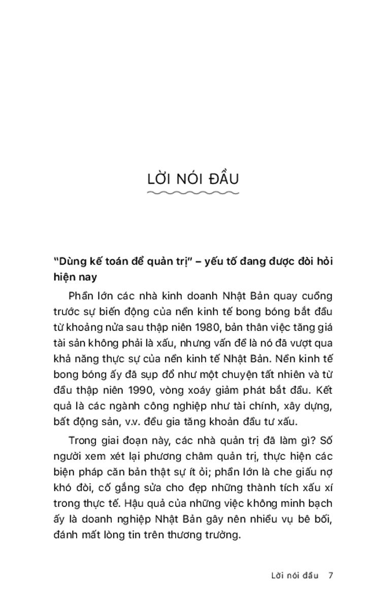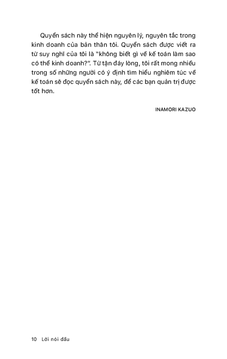 Inamori Kazuo sáng lập Kyocera năm 27 tuổi. Trong quá trình tự thân khởi nghiệp, ông nhận ra muốn doanh nghiệp phát triển lâu dài, CEO phải nắm một cách chính xác thực trạng của doanh nghiệp. Nếu kinh doanh một cách nghiêm túc, thì những con số liên quan đến kinh doanh phải là thứ thể hiện thực trạng kinh doanh mà không được phép thêm vào bất kỳ thao tác nào. Tất cả các hạng mục như báo cáo chi tiết lãi lỗ, biên bản đối chiếu và xác nhận công nợ và cả những con số chi tiết trong đó đều phải là những con số thật, không một chút sai sót, thể hiện chính xác 100% thực trạng của công ty mà ai nhìn vào cũng hiểu. Vì những con số này quan trọng tương đương những chỉ số trên thiết bị điều khiển trong buồng lái máy bay, chúng phải hoàn thành vai trò chỉ báo để người quản trị doanh nghiệp đạt được mục tiêu đã định.