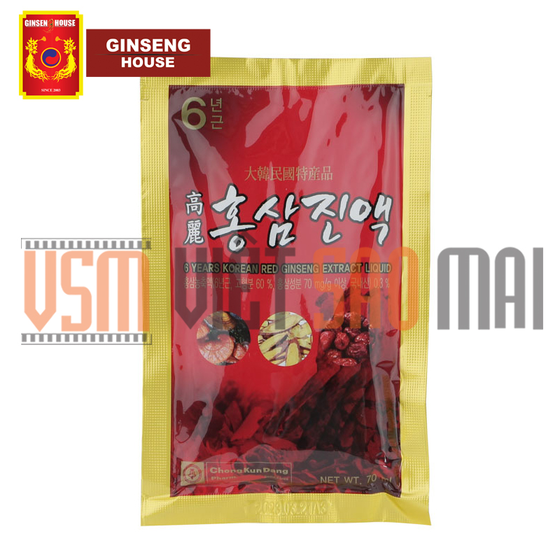 Thực Phẩm Chức Năng Chong Kun Dang Nước Hồng Sâm 6 Năm 6 Years Korean Red Ginseng Eextract Liquid (70ml x 30 gói) “Sản phẩm này không phải là thuốc và không có tác dụng thay thế thuốc chữa bệnh” Thực Phẩm Chức Năng Chong Kun Dang Nước Hồng Sâm 6 Năm - 6 Years Korean Red Ginseng Eextract Liquid (70ml x 30 gói) với 100% là tinh chất hồng sâm nguyên chất, được khá nhiều người tiêu dùng biết đến và xem như thực phẩm dinh dưỡng tốt cho cả gia đình để sử dụng trong mỗi ngày. Sản phẩm có xuất xứ từ Hàn Quốc, được sản xuất theo công nghệ cao, không chứa chất bảo quản, an toàn cho sức khỏe. Thành phần sản phẩm