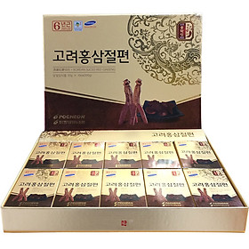 Hồng sâm Hàn Quốc lát tẩm mật ong Pocheon 200g được làm từ hồng sâm củ nguyên chất xắt lát, sản phẩm được đóng gói 20g/gói và được đóng trong hộp nhỏ, rất dễ mang theo
