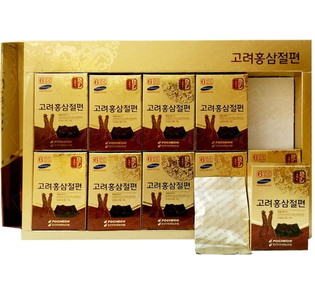 Hồng sâm Hàn Quốc lát tẩm mật ong Pocheon 200g được làm từ hồng sâm củ nguyên chất xắt lát, sản phẩm được đóng gói 20g/gói và được đóng trong hộp nhỏ, rất dễ mang theo và tiện dụng mọi lúc mọi nơi. Tẩm và làm chín hồng sâm trong mật ong và làm mềm hồng sâm để dễ nhai hơn Làm dịu vị đắng của hồng sâm Cải thiện chứng táo bón với hoạt chất isomalto-oligosaccharide Đối với phụ nữ Hồng sâm Hàn Quốc lát tẩm mật ong Pocheon nếu được sử dụng kiên trì sẽ giúp các chị em phụ nữ làm chậm quá trình lão hóa tự nhiên, từ đó kéo dài tuổi thanh xuân và gia tăng tuổi thọ; đồng thời sản phẩm này cũng cung cấp cho cơ thể nhiều protein và vitamin C và có khả năng tăng cường năng suất làm việc Đối với nam giới: Với các đấng mày râu, nhất là nam giới trên 40 tuổi thì sao? Hồng sâm Hàn Quốc lát tẩm mật ong Pocheon là một đóng góp lớn giúp tăng cường sinh lý, điều hòa hoạt động tim mạch, nâng cao hiệu quả hoạt động trí não và các hoạt động lao động chân tay. Ngoài ra, sử dụng sản phẩm còn hạn chế Stress, căng thẳng đầu óc, mệt mỏi cơ thể. Đối với người già: Dùng Hồng sâm Hàn Quốc lát tẩm mật ong Pocheon thường xuyên giúp phòng ngừa các thể bệnh về xương khớp như loãng xương, thoái hóa cột sống, đồng thời sản phẩm này còn tăng cường thị lực, thính giác, trí lực và cả thể lực, giúp người già ăn ngon, ngủ sâu hơn Trẻ nhỏ: Hồng sâm Hàn Quốc lát tẩm mật ong Pocheon vừa hỗ trợ nâng cao sức đề kháng chống lại nhiều bệnh tật, vừa kích thích trẻ ăn uống ngon miệng, ngủ kỹ và tăng khả năng ham muốn hoạt động, vui chơi để phát triển một cách toàn diện hơn. Không những thế, hồng sâm cùng với mật ong còn rất tốt đối với hệ tiêu hóa và giúp nâng cao sức khỏe, trí não của trẻ. Đây cũng là loại thực phẩm chức năng có hương vị thơm ngon, không khó sử dụng để trẻ có thể sử dụng. Với người suy nhược: Với người mới ốm dậy khi thể trạng còn yếu thì sản phẩm này có khả năng hỗ trợ cơ thể phục hồi các chức năng quan trọng, đồng thời bổ sung nhiều dưỡng chất thiết yếu để bồi bổ cho cơ thể. Hướng dẫn sử dụng: Có thể nhai rồi ngậm và nuốt cả bã hoặc pha nước uống như pha trà, mỗi ngày dùng từ 1 đến 2 lần, mỗi lần khoảng 3 lát hồng sâm tương đương khoảng 2 – 5g. Bảo quản: Bảo quản nơi khô ráo thoáng mát, tránh tiếp xúc trực tiếp với ánh nắng mặt trời. Dùng xong đậy kín nắp cho vào ngăn mát tủ lạnh.