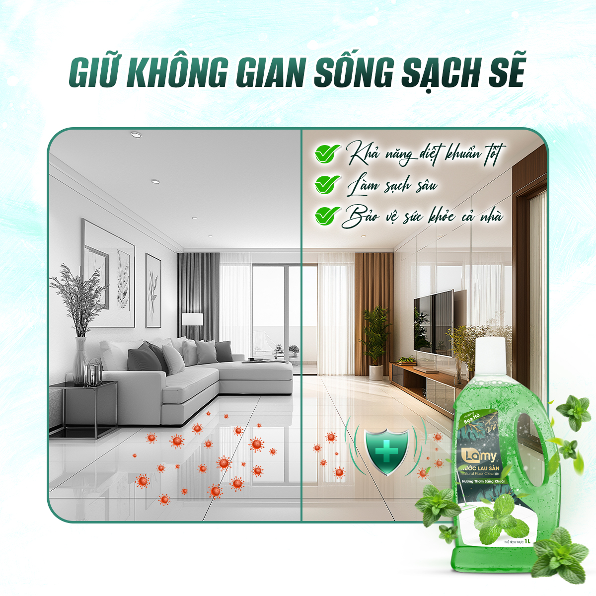 ️An toàn và thân thiện: Với công thức độc quyền, nước lau sàn Lamy hoàn toàn không chứa hóa chất độc hại, đảm bảo an toàn cho sức khỏe gia đình. Sản phẩm không gây kích ứng cho da tay và không để lại cặn bẩn sau khi sử dụng, giúp bạn yên tâm hơn khi lau dọn.