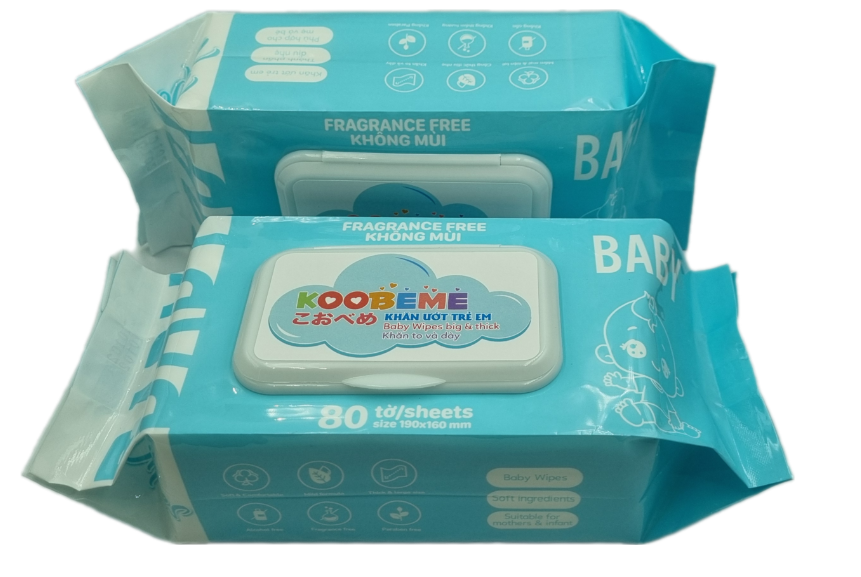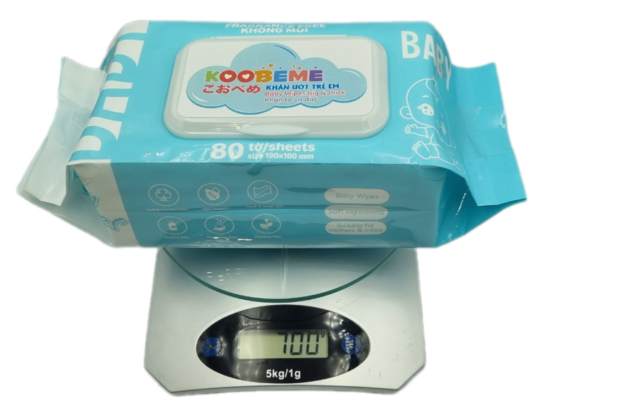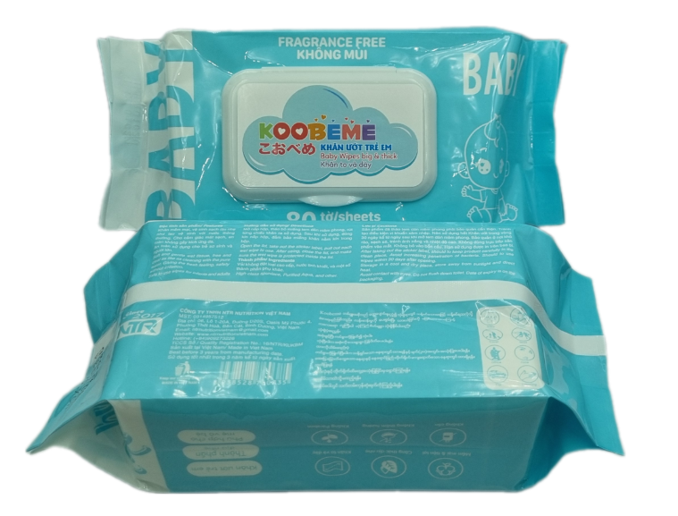 Mã sản phẩm này 1 thùng gồm 4 gói. Khăn ướt trẻ em Koobeme không mùi, khăn to và dày. Gói đủ 80 tờ. Khối lượng một gói 700g. Khăn thấm ướt nước vừa phải, đều khăn. Quy cách khăn: 16 cm x 19cm, dày 50gsm, hoa văn tròn Thành phần: Nước tinh khiết 99,99% , khăn được làm bằng vải không dệt cao cấp Không chứa Paraben, Không Cồn, Không hương. Không hoá chất mỹ phẩm. Không gây kích ứng da Thích hợp cho da nhạy cảm, sử dụng cho mẹ và bé, và cả gia đình Công dụng: lau vệ sinh tay, mặt, và toàn thân cho cảm giác sạch nhẹ nhàng như khi rửa với nước thông thường. Sản phẩm được sản xuất theo dây chuyền tự động, đảm bảo vệ sinh an toàn