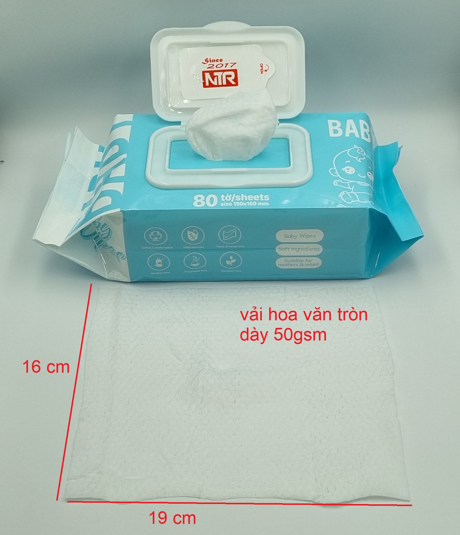 Được làm từ sợi vải không dệt, rất dai, mềm, mịn và có độ đàn hồi cao. Dạng khô, thích hợp cho làn da nhạy cảm nhất. An toàn cho bé, tiết kiệm cho mẹ.
