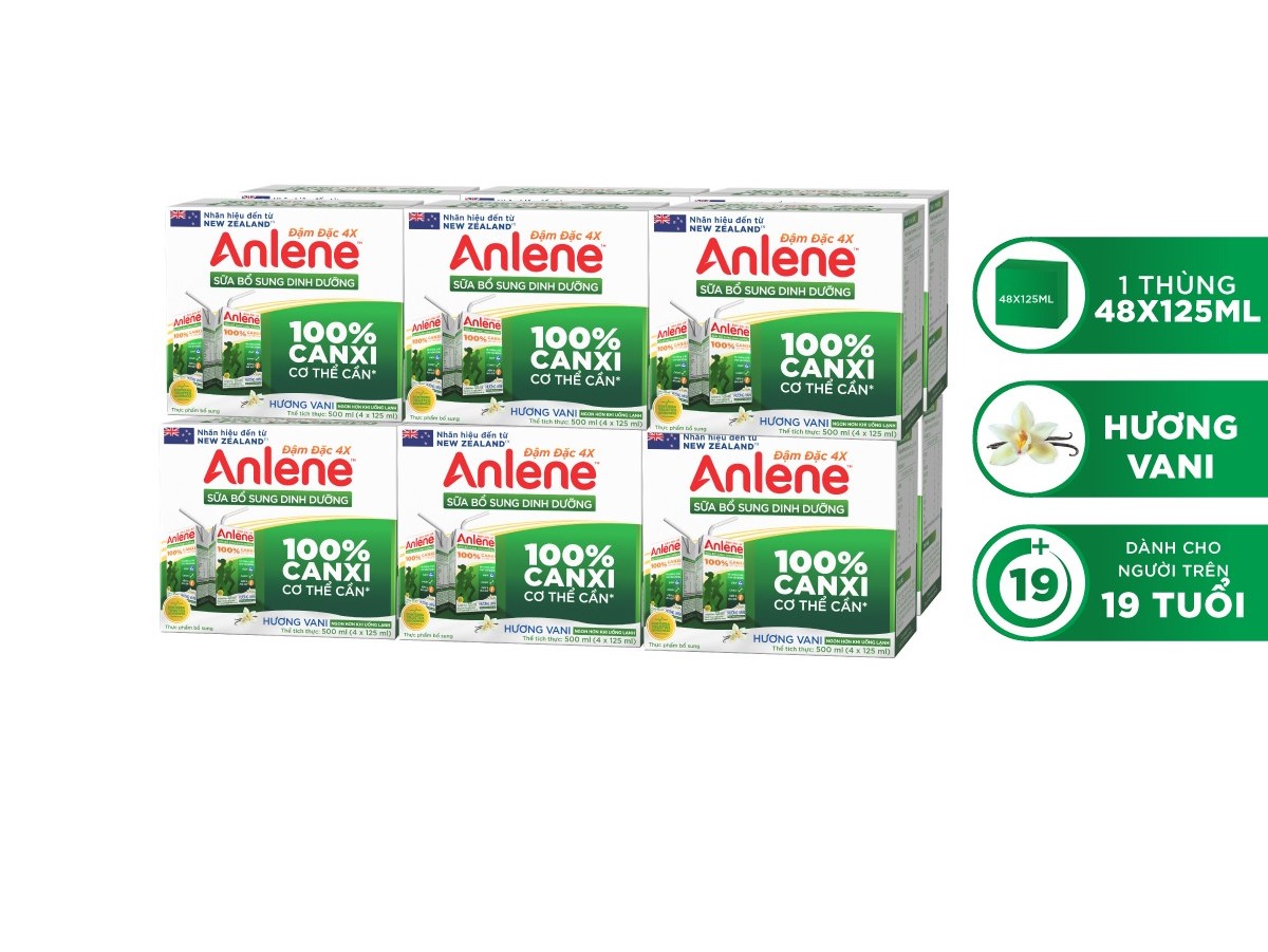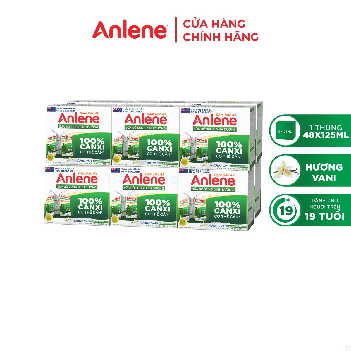 ✨Thùng 48 Hộp Sữa Anlene Đậm Đặc 4X Ít Béo Hương Vani (12 x 4 x 125 ml)