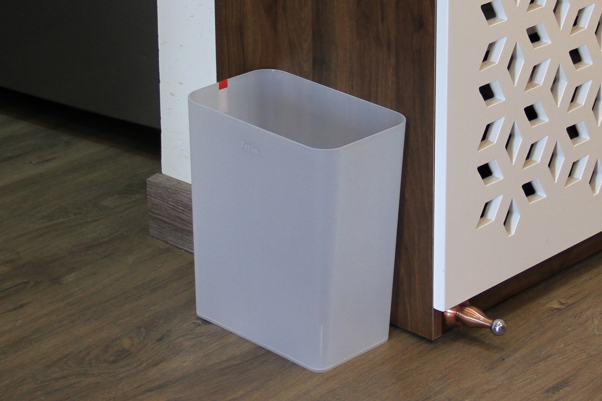 Hình dạng mỏng và bản lề vô hình của thùng rác này làm cho nó hoàn hảo trong không gian chật hẹp. Khe đựng túi nilong tích hợp bên trong giúp việc thay túi nilong