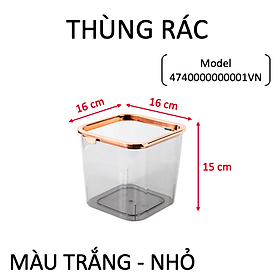 THÙNG RÁC NHỰA PET CỨNG CÁP, TRONG SUỐT, SANG TRỌNG - MÀU TRẮNG - SIZE NHỎ - LỚN Thùng rác trong suốt là mẫu mã thùng để bàn, dưới bàn làm việc, bàn học rất thanh lịch. Đựng các chất thải khô rất vệ sinh và mang lại thẩm mỹ cao. Chất liệu nhựa PET cứng cáp, dày, chắc chắn, nhựa cứng trong suốt cùng màu sắc hài hòa. Một chiếc thùng rác đẹp như một món nội thất trong gia đình, mỗi món đồ đều giúp tăng thẩm mỹ cho ngôi nhà, khiến ngôi nhà của bạn sạch đẹp hơn, tiện nghi hơn. Kích thước sản phẩm: