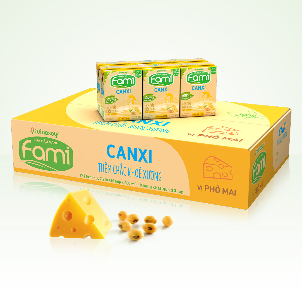 CHẮC KHỎE XƯƠNG - TĂNG CƯỜNG ĐỀ KHÁNG MỖI NGÀY - Thùng sữa đậu nành Fami Canxi vị Phô Mai dinh dưỡng (200ml x 6 Lốc x 6 Hộp ) được làm từ 100% hạt