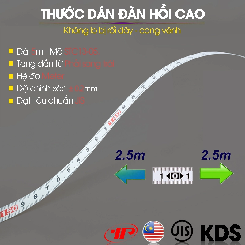 THƯỚC DÁN 5M SỐ ĐO 2 BÊN KDS STC13-05 THÔNG SỐ KỸ THUẬT:
