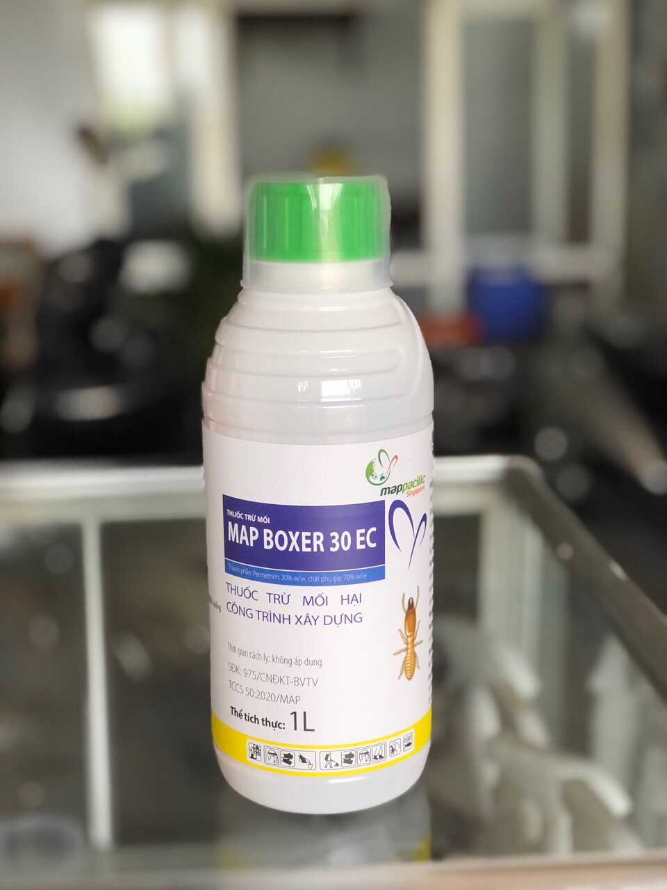 - Xuất xứ: Map Paciffic Singapore -Công dụng: Thuốc chống mối Map Boxer 30 EC diệt trừ được tất cả các loại mối: Mối gỗ ẩm, mối gỗ khô, mối đất và các loại mọt. -Ưu điểm:
