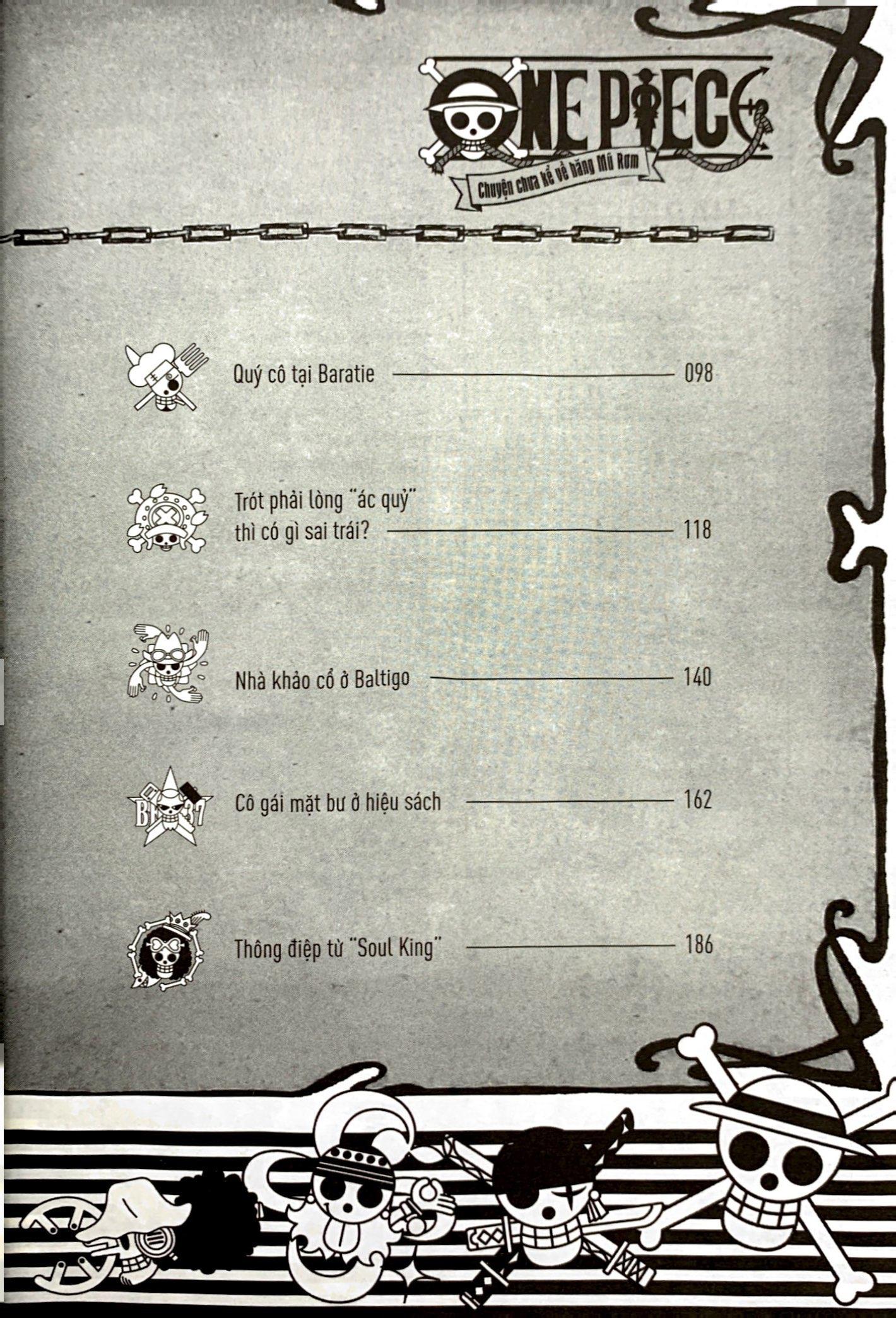 Mua tại TiktokTiểu Thuyết One Piece - Chuyện Chưa Kể Về Băng Mũ Rơm Một tác phẩm mang đến những góc nhìn mới đầy cảm hứng về các thành viên băng Mũ Rơm. Bạn sẽ có trong tay tập truyện ngắn qua lời kể của hai anh em binh sĩ đã tham gia trận chiến thượng đỉnh, màn “bình loạn” cực rôm rả về kiếm sĩ mạnh nhất của những người lính đã ngà ngà say, ước mơ được một lần trông thấy người đẹp trong mộng bằng xương bằng thịt của một anh chàng rụt rè hay được nghe chia sẻ về ước mơ trở thành nhà khảo cổ của một cô bé ở Baltigo… Loạt truyện hoàn toàn mới này sẽ khiến bạn yêu băng Mũ Rơm nhiều hơn những gì bạn tưởng đấy!!