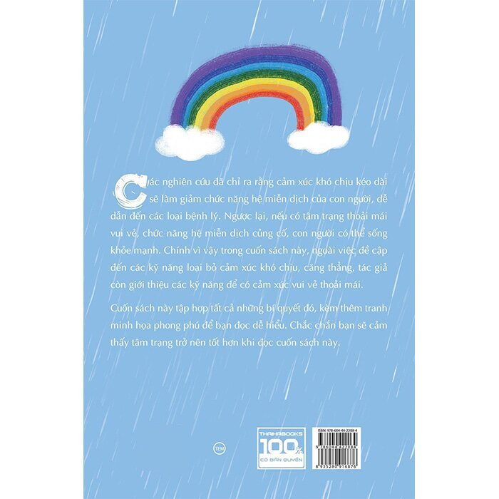 Vì vậy cuốn sách Tìm cầu vồng sau cơn mưa cảm xúc do Thái Hà Books ấn hành, ngoài giới thiệu đến bạn những kỹ năng loại bỏ cảm xúc khó chịu và căng thẳng. Sẽ còn giới thiệu đến bạn các kỹ năng để có cảm xúc vui vẻ, thoải mái. Đặc biệt đó không phải là những điều xa vời mà đều là những việc bạn có thể thực hành ngay lập tức!