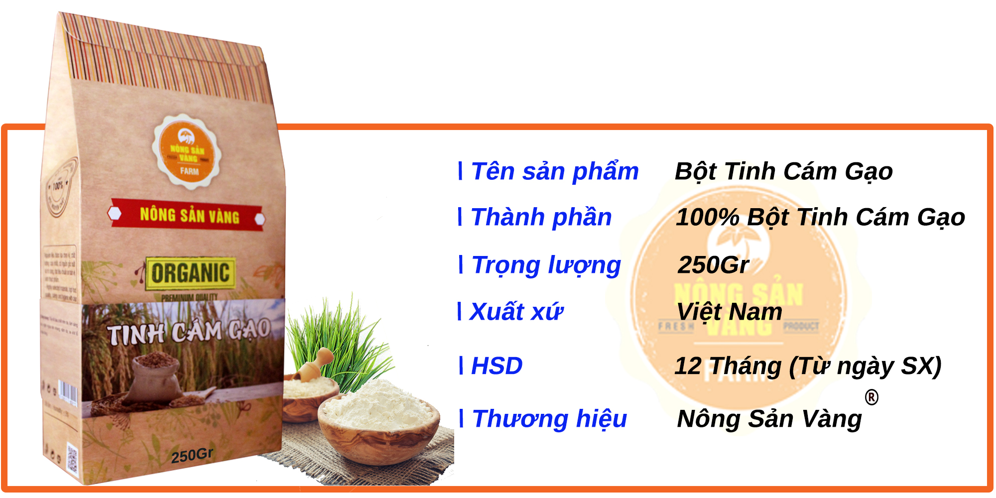 ✨Tinh Bột Cám Gạo Nguyên Chất 250gr - Nông Sản Vàng