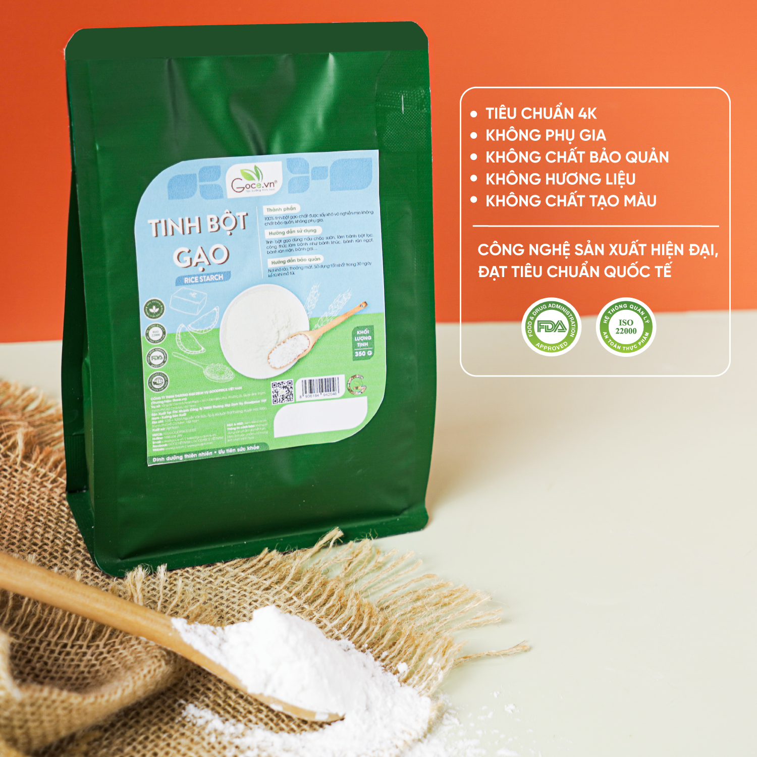 THÔNG TIN SẢN PHẨM TINH BỘT GẠO - Khối lượng: 350g. - Thành phần: 100% Nguyên chất từ hạt gạo Miền Tây chiết được xuất thành dạng tinh bột, không chất bảo quản, không phụ