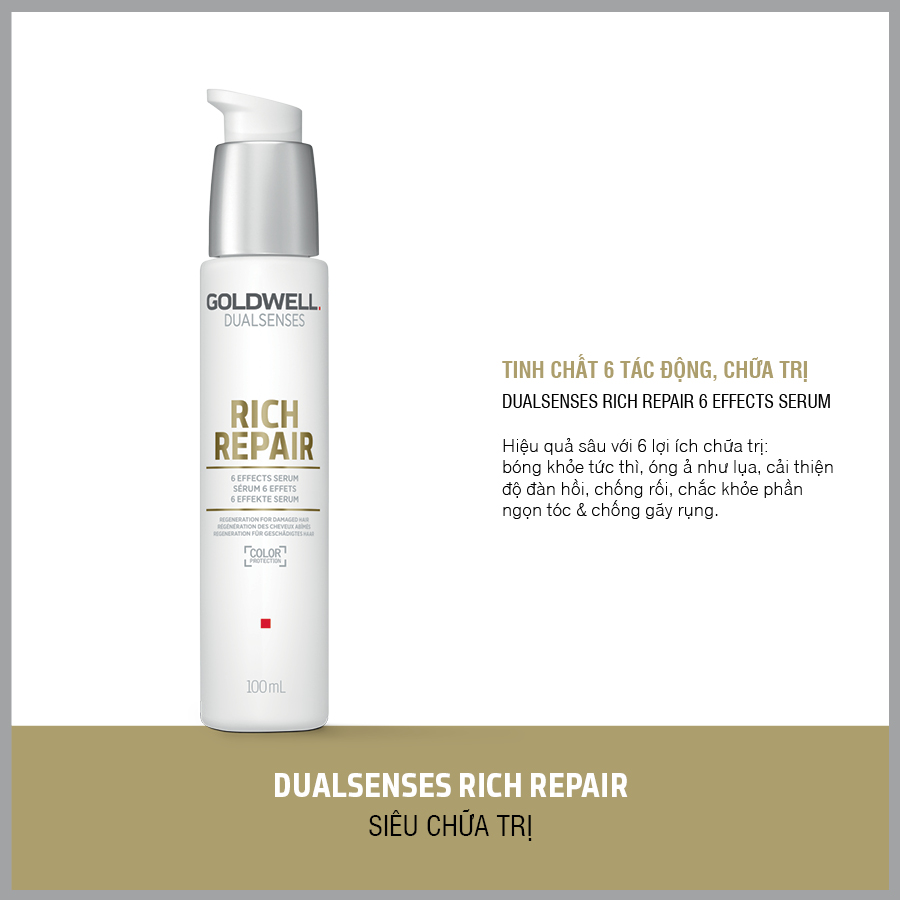 Tinh Chất 6 Tác Động Phục Hồi Tóc Hư Tổn Goldwell Rich Repair Dưỡng Tóc Mềm Mượt, Chắc Khỏe 100ml - Phù hợp với tình trạng tóc: + Tóc hư tổn trung bình tới hư