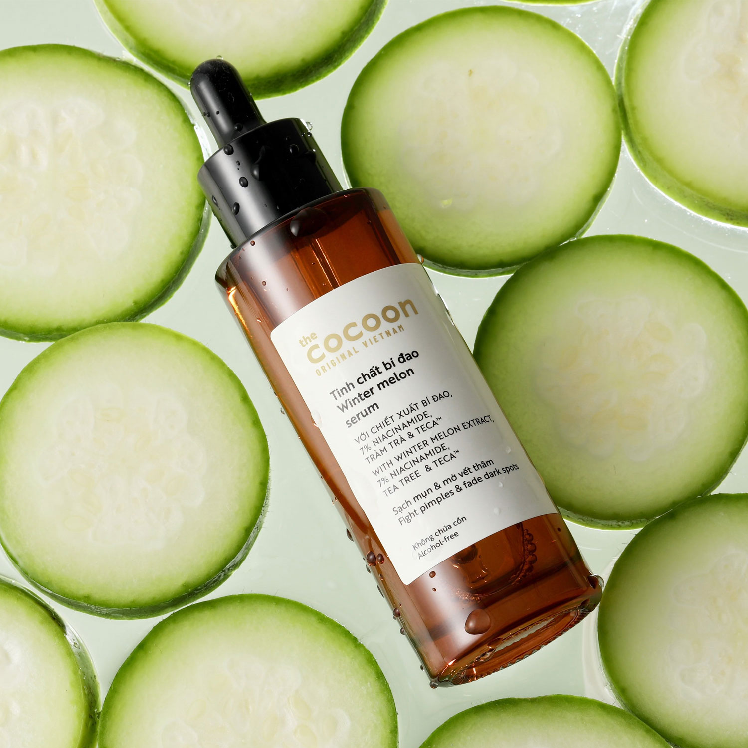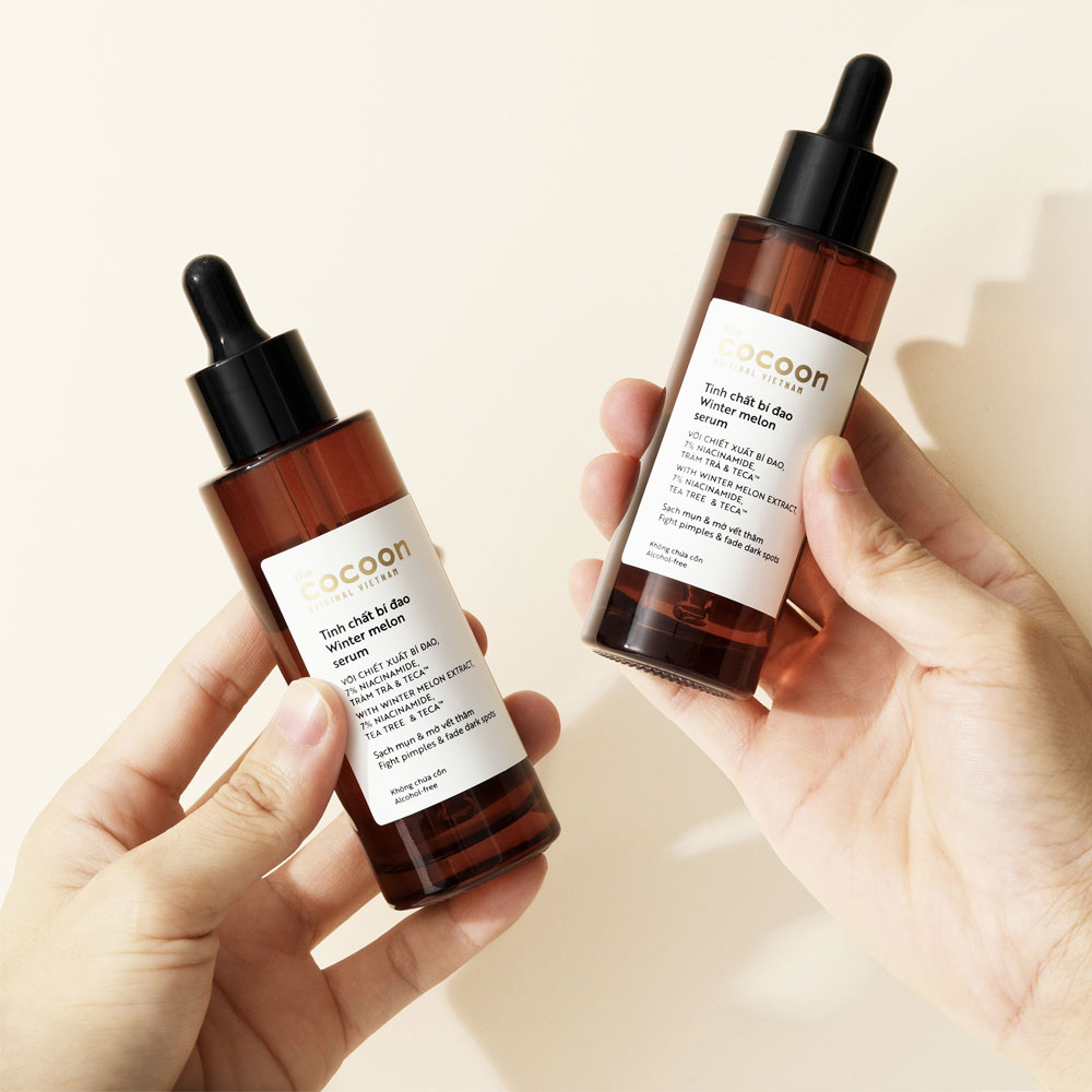Với các thành phần từ thực vật làm chủ đạo gồm bí đao, rau má và tràm trà, bổ sung thêm 7% niacinamide (vitamin B3) - tinh chất bí đao cocoon sẽ phục hồi mạnh mẽ tình