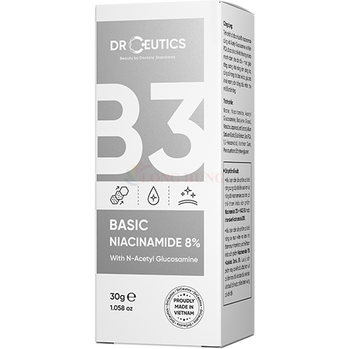 Tinh chất DrCeutics Basic Niacinamide 8%Thành phần: Niacinamide: Tạo hàng rào lipid, điều tiết dầu, hỗ trợ làm giảm và cải thiện tình trạng mụn. Bảo vệ khỏi tác hại của ánh nắng mặt trời. Cải thiện...