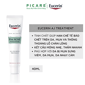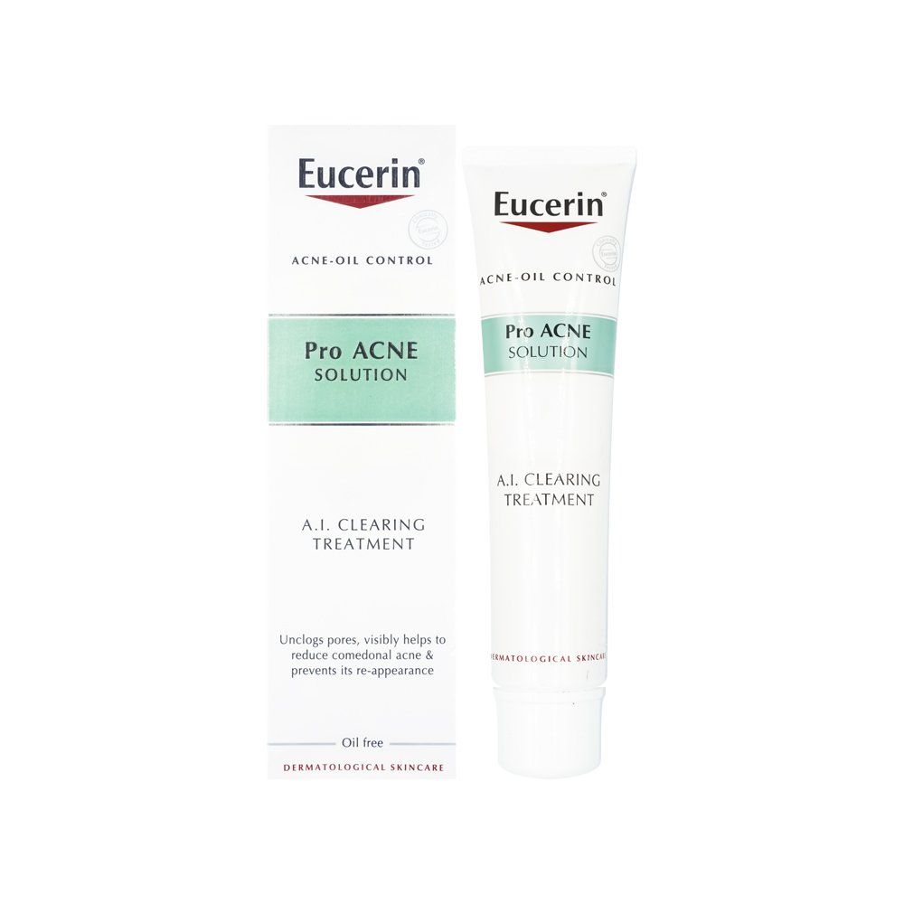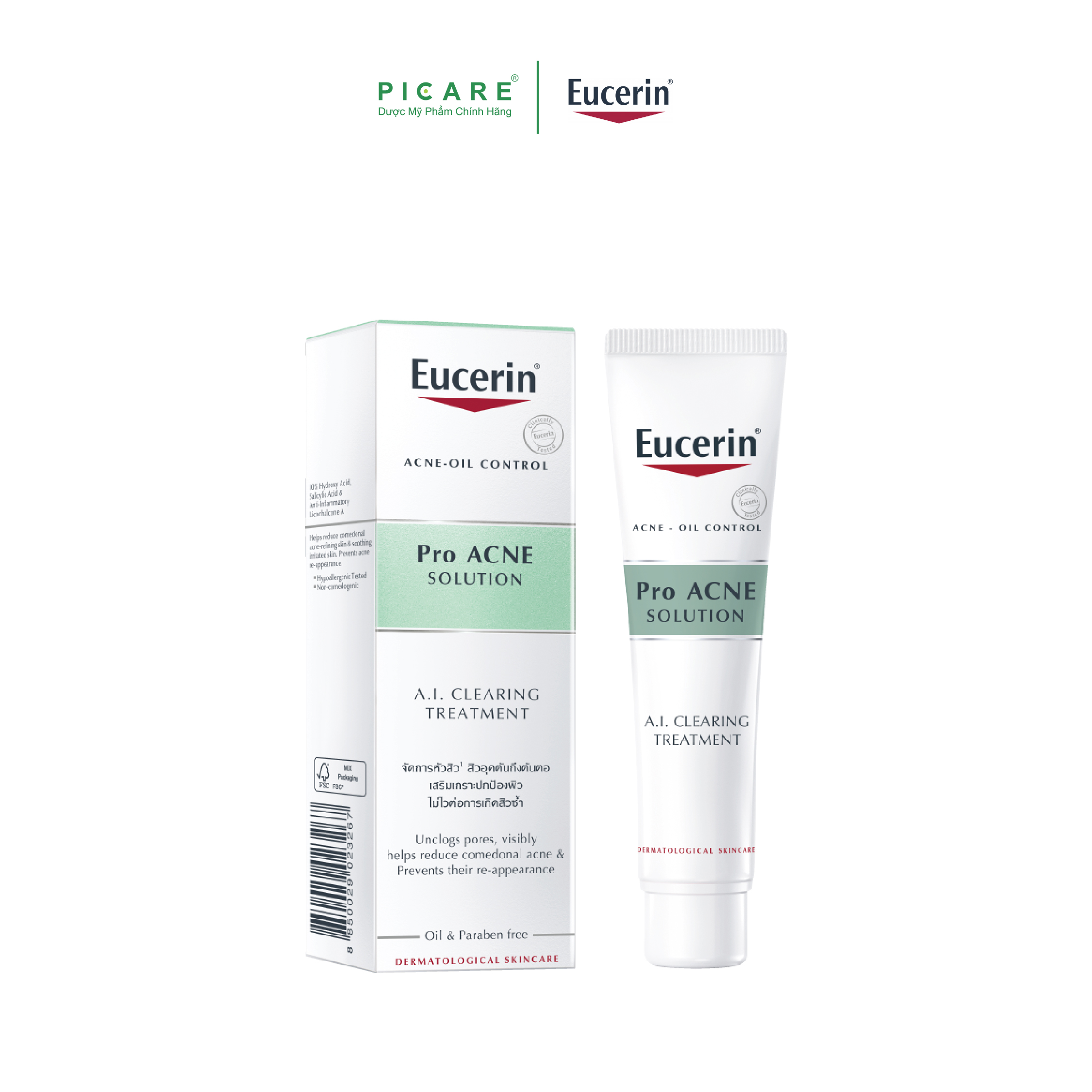 - Với công thức tiên tiến, Eucerin ProAcne A.I Clearing Treatment là sản phẩm được thiết kế với công thức cải tiến giúp giảm mụn và thâm sau mụn.
