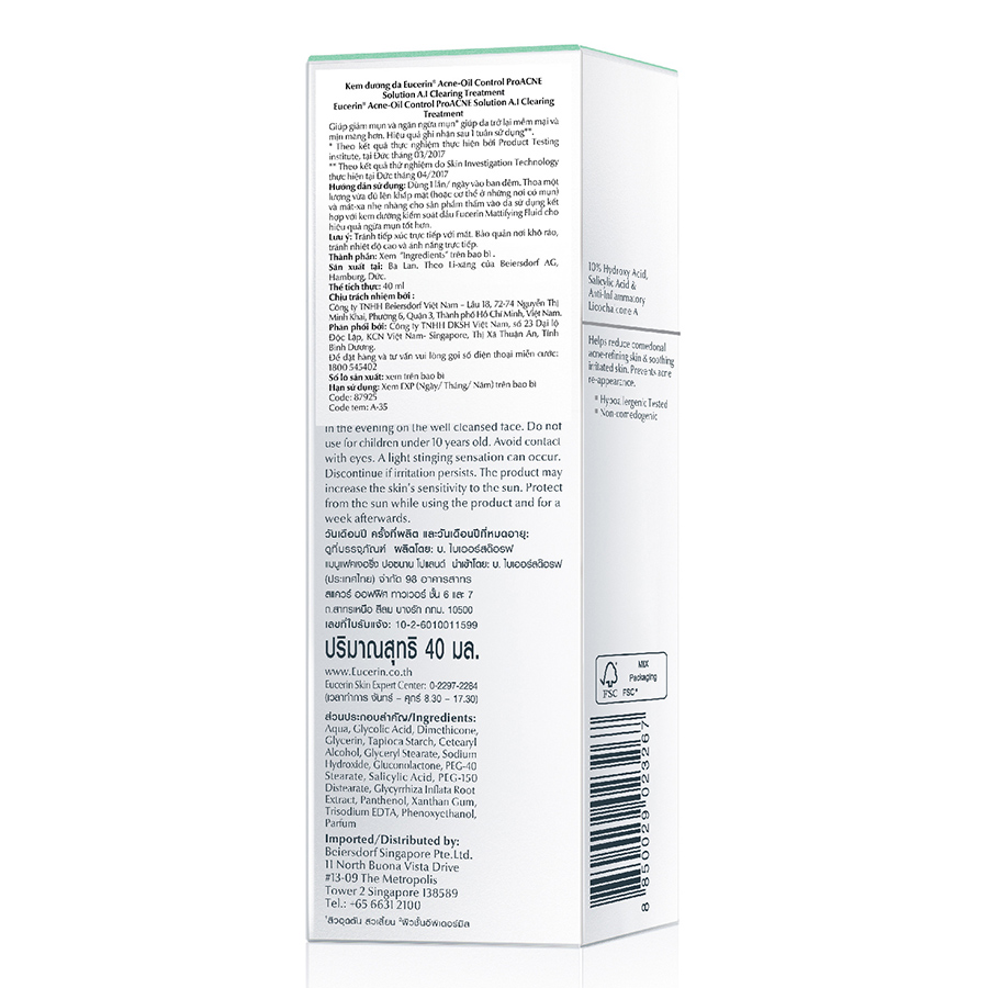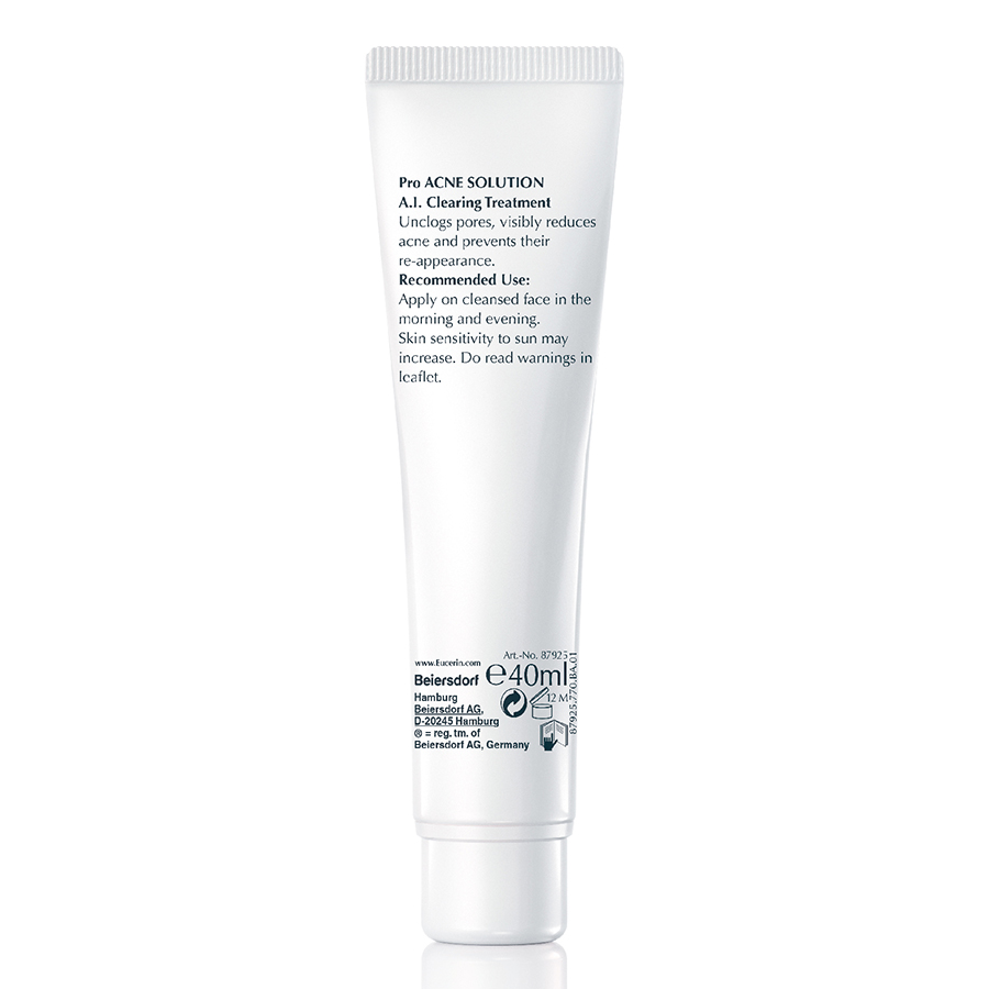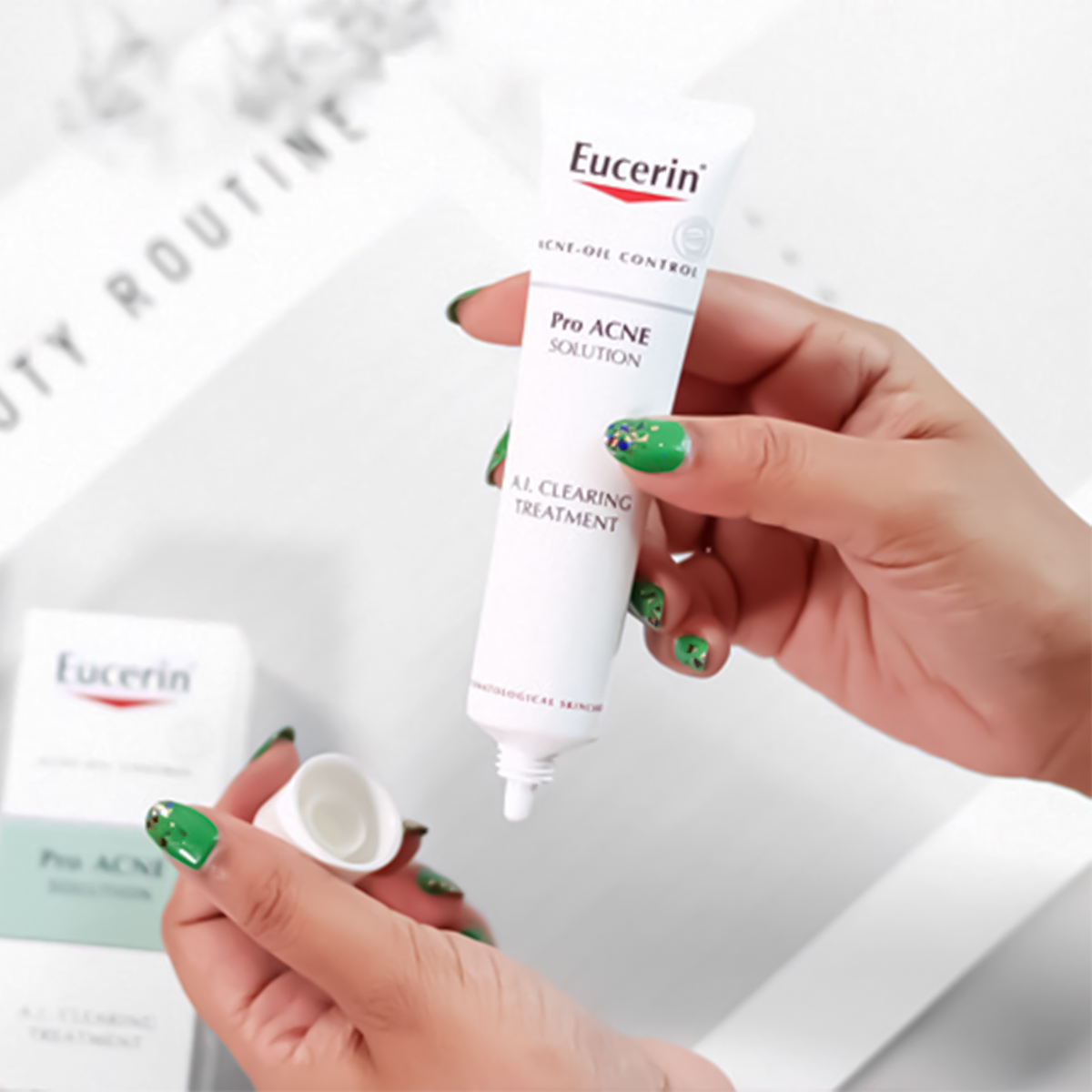 - Eucerin ProAcne A.I Clearing Treatment có hiệu quả từ sau tuần đầu tiên, cải thiện bề mặt da và phục hồi da mịn màng hơn. ***Mẫu mã bao bì có thể thay đổi theo quy định của nhãn hàng