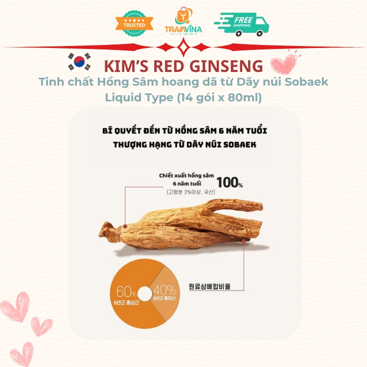 - ️Được chiết xuất từ hồng sâm 6 năm tuổi với tỷ lệ trộn nhân sâm thô: 60% củ, 40% rễ