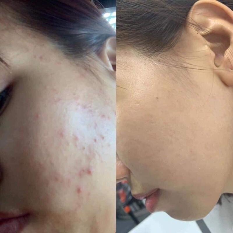 Trước và sau khi dùng tinh chất saffron trị mụn dr cell