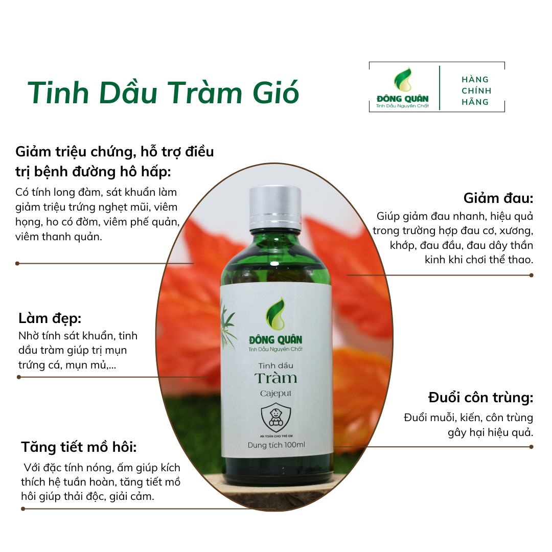 ✨Tinh Dầu Tràm Nguyên Chất Đông Quân Lành Tính, Có Tác Dụng Giữ Ấm Cơ Thể, Phòng Tránh Cảm Mạo, An Toàn Cho Trẻ Nhỏ 100ml/lọ