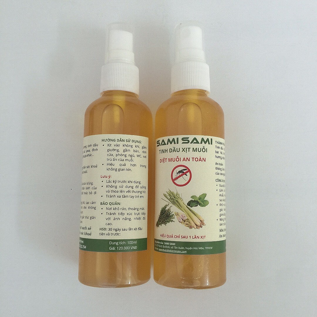 SAMI SAMI - Tinh dầu xịt muỗi - diệt muỗi an toàn Bạn có biết rằng có những loại cây mà mùi hương của nó là nỗi sợ hãi của côn trùng như muỗi không? Chẳng hạn như mùi của cây cỏ xạ hương là chất độc mà muỗi rất sợ hãi, nhưng nó lại hoàn toàn vô hại với con người. Xạ hương còn mang đến cảm giác thư giãn tinh thần cho con người nữa. Một số loại cây khác như đinh hương, sả, bạc hà, tràm trà cũng có công dụng đuổi muỗi, nhưng hoàn toàn an toàn với con người. Thành phần tinh dầu diệt muỗi SAMI SAMI: Chiết xuất từ các loại cây cỏ có mùi như Tinh dầu cỏ xạ hương, tinh dầu bạc hà, tinh dầu sả java, đinh hương, tràm trà, phụ gia khá SAMI SAMI an toàn, không ảnh hưởng đến sức khoẻ của con người và vật nuôi. Công dụng thuốc xịt muỗi SAMI SAMI: