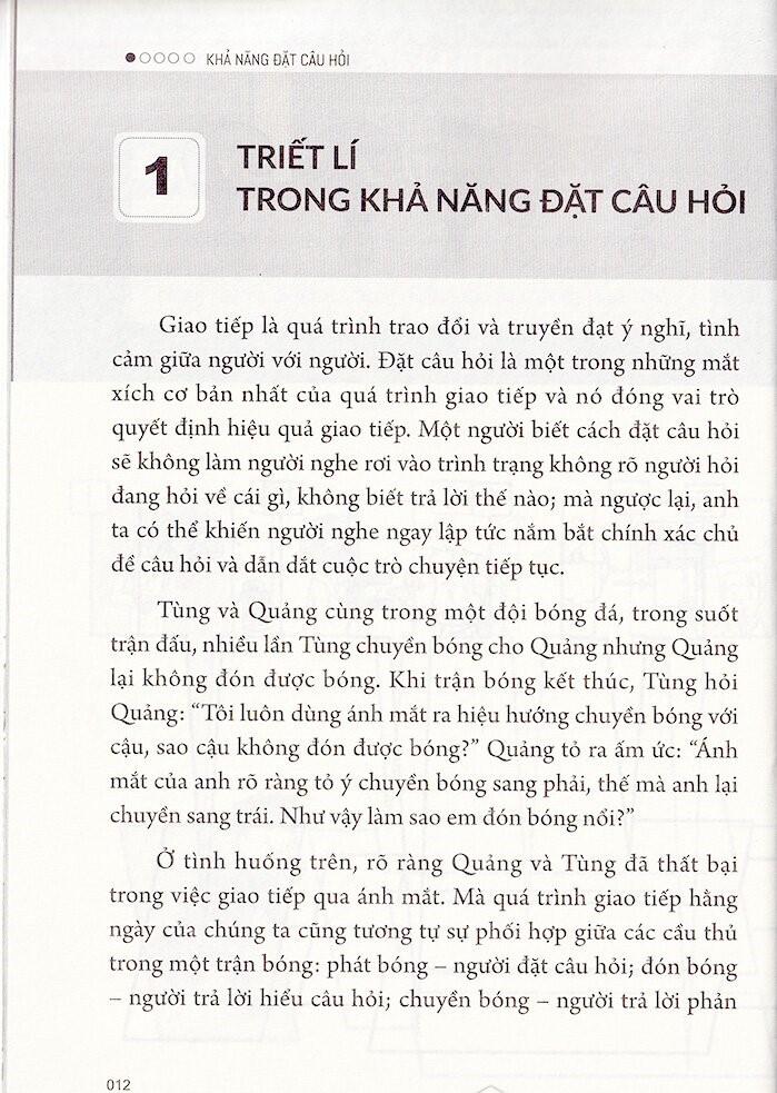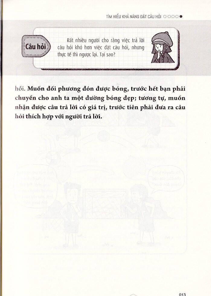 Đặt câu hỏi là quá trình cân nhắc cả hai phía, người hỏi không chỉ phải nêu rõ vấn đề mà còn có vai trò dẫn dắt cuộc trò chuyện. Vì vậy, người đặt câu hỏi xuất sắc là người có thể “vận hành hệ thống kép”: một là trau chuốt câu hỏi của m.ình sao cho nổi bật trọng tâm và có tính logic; hai là phải quan tâm đến mong muốn và trải nghiệm của đối phương, dẫn dắt cuộc trò chuyện được tiếp tục. Việc “vận hành hệ thống kép” này ban đầu sẽ tương đối khó khăn, nhưng chỉ cần thực hành nhiều lần, nó sẽ trở nên dễ dàng như một thói quen.