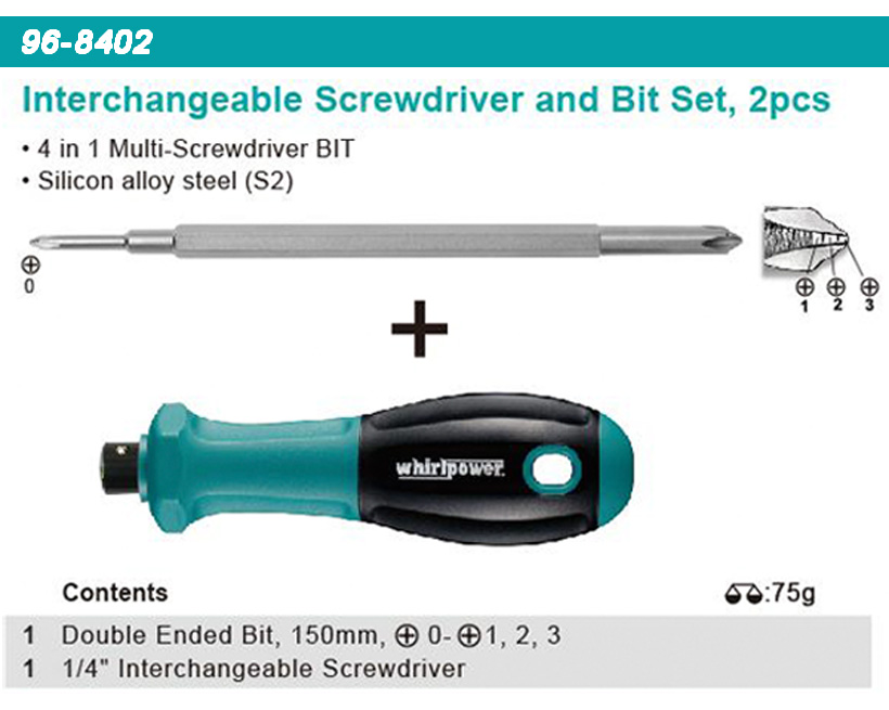 • Thông thường mỗi chiếc tô vít sẽ có một đầu vặn với hình dáng phù hợp, để thực hiện được nhiều công việc bạn sẽ phải sắm cho mình nhiều chiếc tô vít với nhiều đầu vặn khác nhau. Điều này vừa tốn kém lại vừa khiến túi đồ nghề của bạn thêm cồng kềnh. Tô vít bake 4 trong 1 Whirlpower với 4 mũi bake có kích thước là: Ph0, Ph1,2,3 trong 1 cây tô vít.