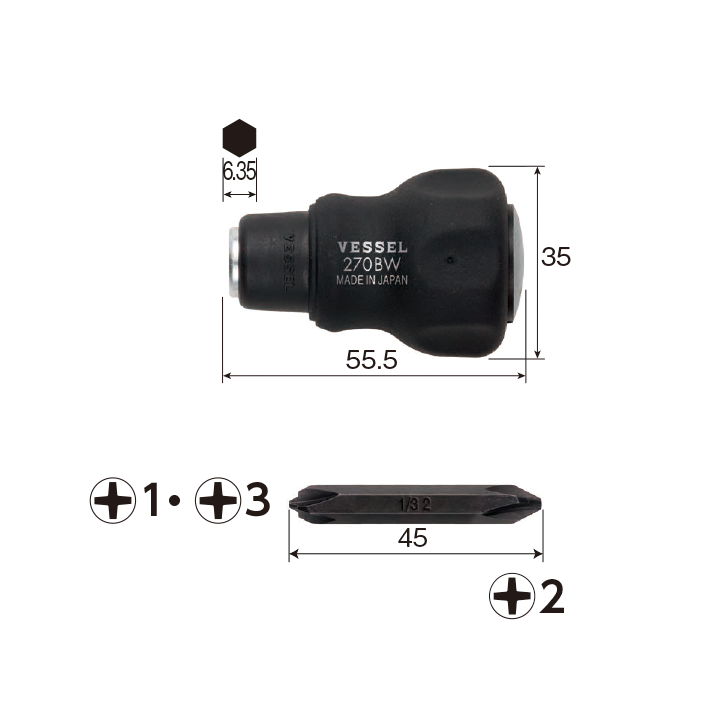 ✨Tô vít ngắn đổi đầu No.270BW Vessel (Nhật Bản)