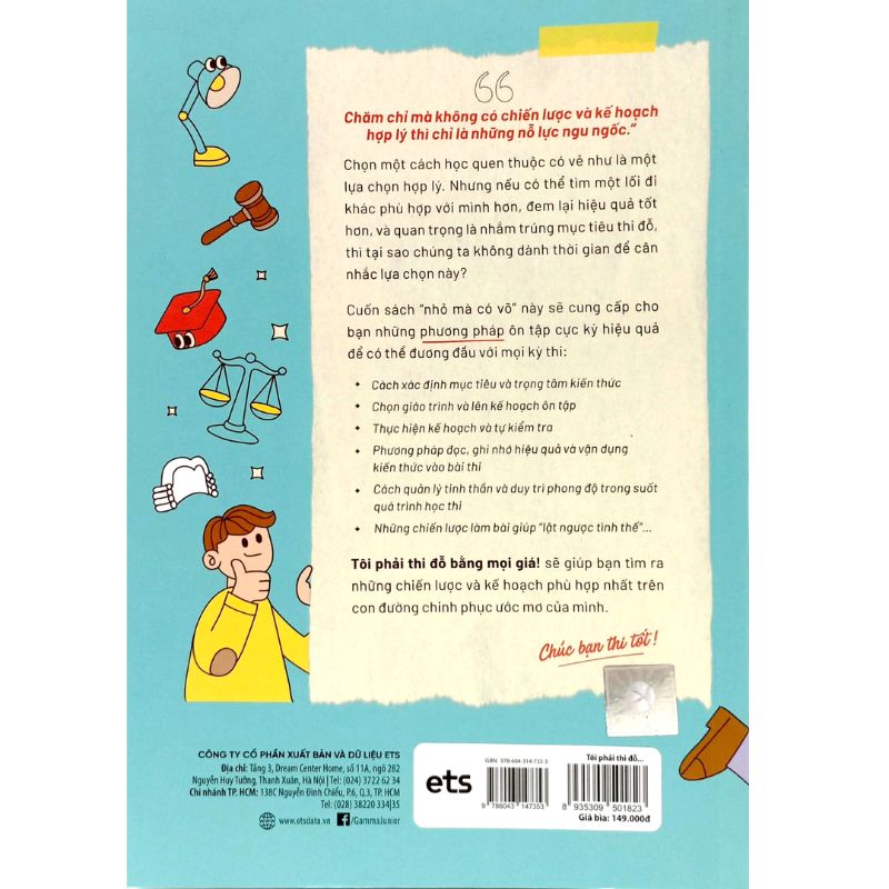 Với Tôi phải thi đỗ bằng mọi giá!, bạn sẽ học được cách xác định mục tiêu và trọng tâm kiến thức, chọn giáo trình và lên kế hoạch ôn tập, thực hiện kế hoạch và tự kiểm tra, phương pháp đọc, ghi nhớ hiệu quả và vận dụng kiến thức vào bài thi, cách quản lý tinh thần và duy trì phong độ trong suốt quá trình học thi, những chiến lược làm bài giúp “lật ngược tình thế”…