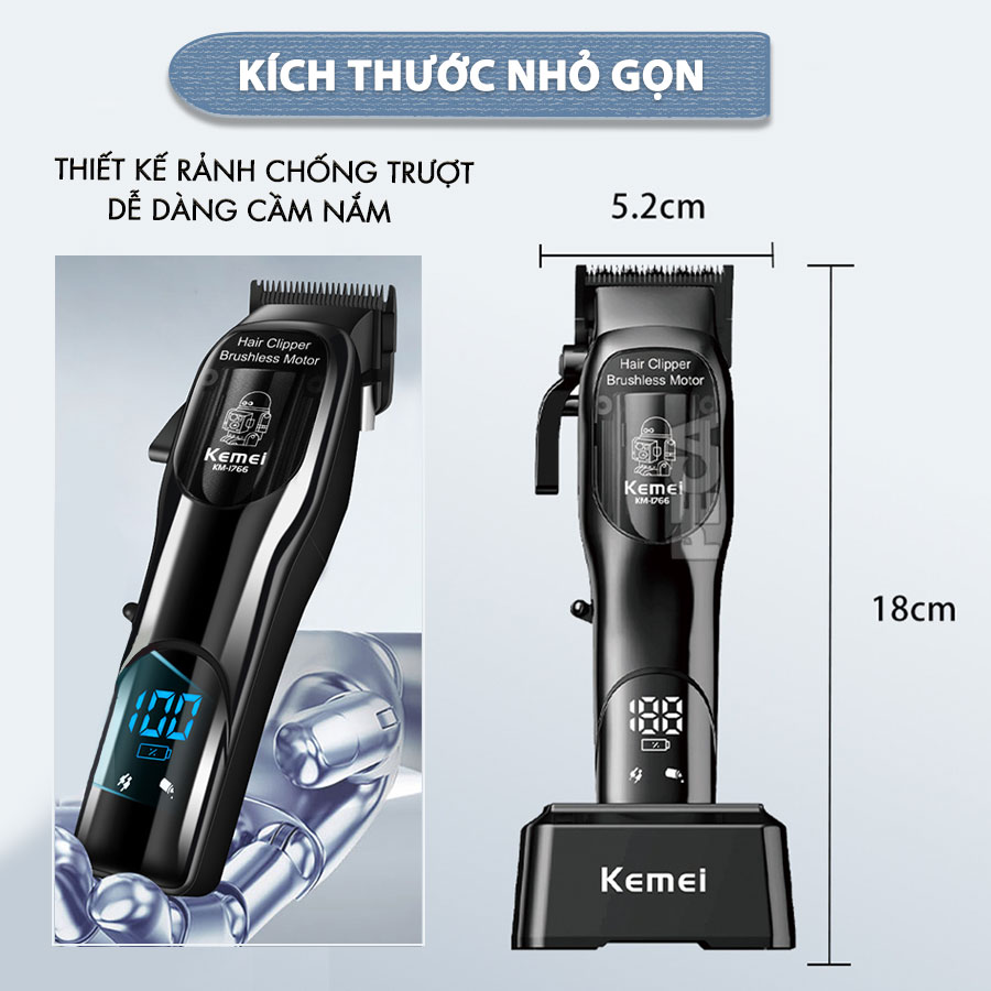 ✨Tông đơ cắt tóc chuyên nghiệp Kemei KM-1766 lưỡi cắt mạ carbon DLC cao cấp có động cơ không chổi than màn hình LCD hiển thị công suất 5W - Chính hãng
